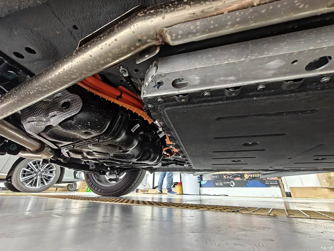 底盘护板要自己额外加装,底盘虽然很平,电池防护也还可以,但是护板确实没有。 刚开始开方向盘有点异响,偶发性的,有车友说公里数过了两千公里就好了,也有去涂了点油好了的