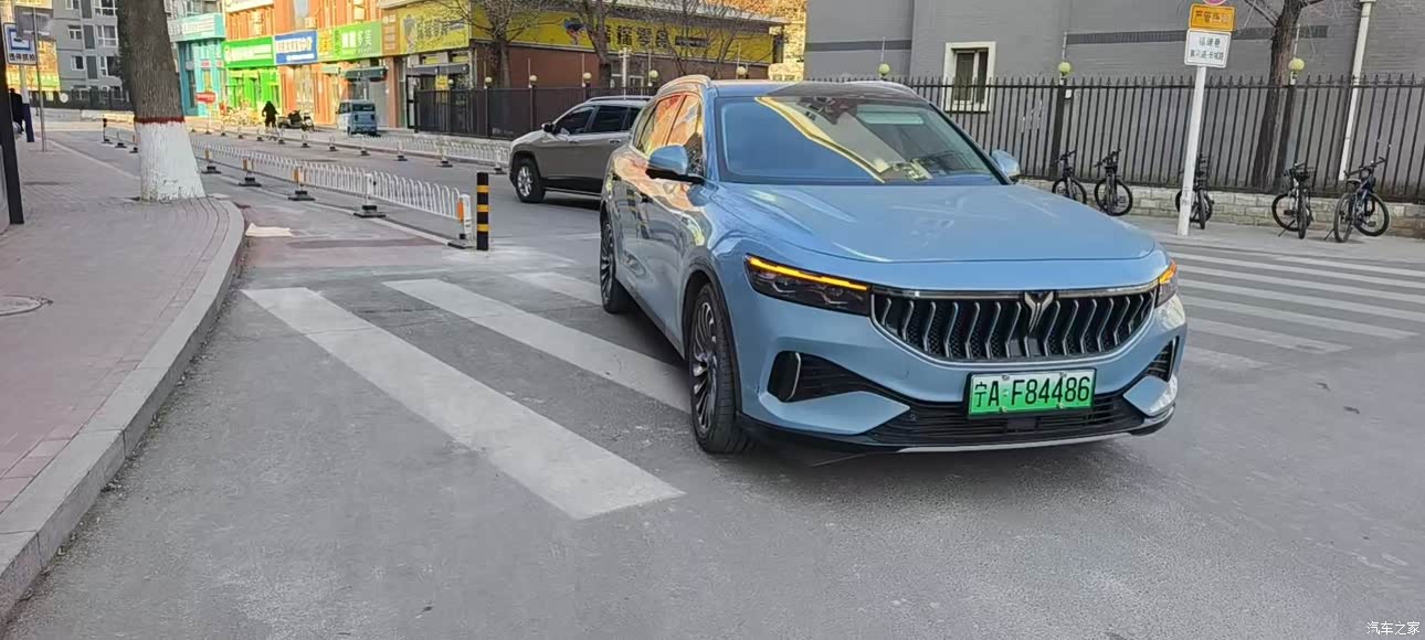 外观 外观我选的云清蓝,店里还有杜若白玄英黑,我一眼看中这个蓝,既不显商务又不落入常见,太阳下漆面透出干净的蓝,整个人看着也跟着亮起来,前脸那条贯穿灯带配飞鸟样式车标,晚上点亮辨识度很高,侧面线条顺,近五米的车身看着修长不臃肿,轮毂造型带动感,洗干净停路边,云清蓝泛着淡淡的光,我会多看两眼,深色系沾灰显得快,得勤快洗车。