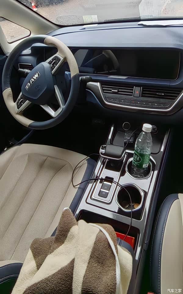 内饰的设计走的是简约时尚的设计风格,虽说车内装修也用了一些硬质材料,但是经过细致的做工,看上去还是不错的。美中不足的是新车内饰有异味,考虑到家里两个孩子都不大,所以对这个问题有点纠结。