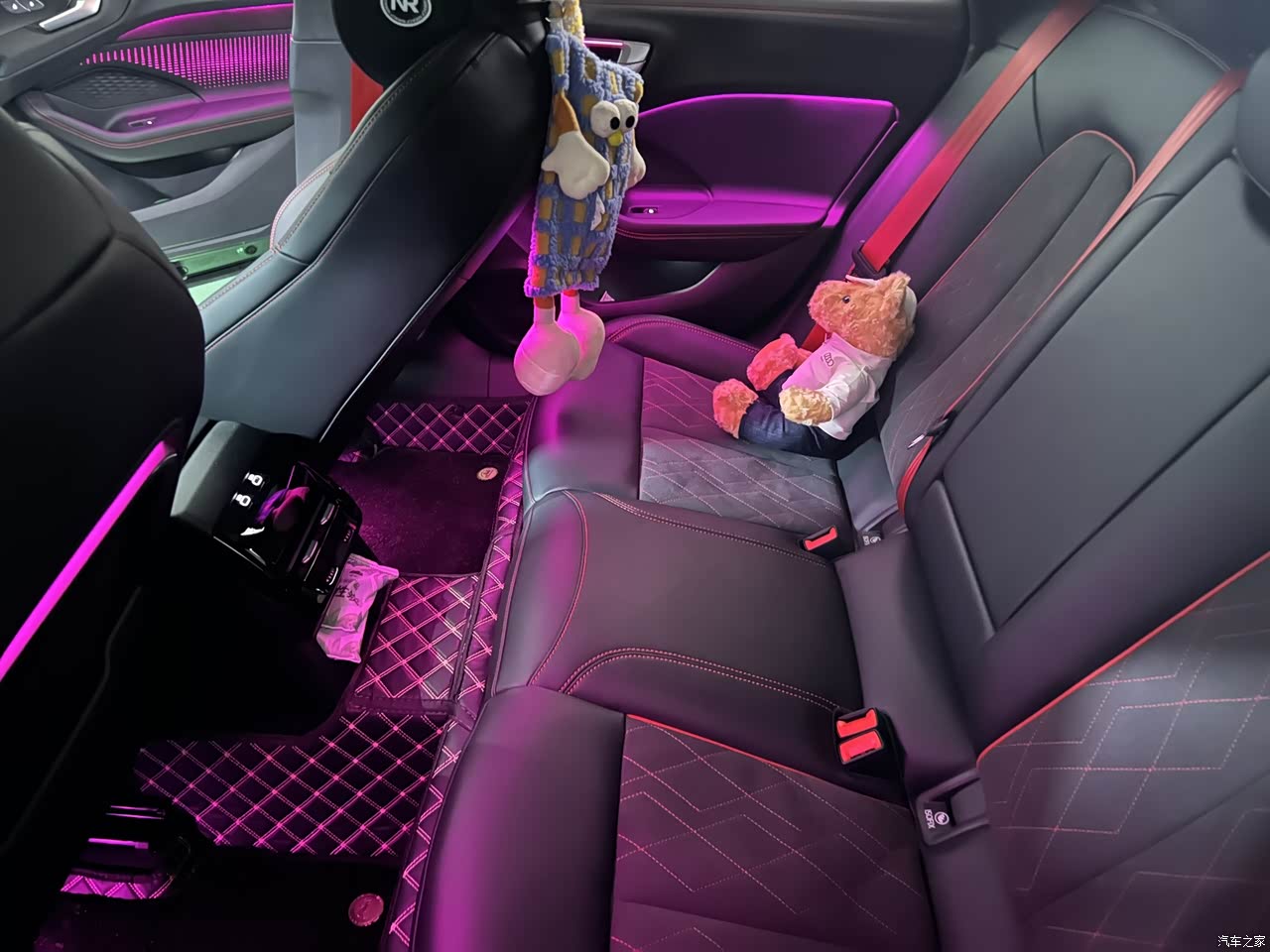 风格简约轻奢风格很对味,用料以软性材质为主,缝线工艺细腻,氛围灯营造出不错的豪华感。车内的氛围灯这次也可以自定义颜色,灯光出来的很细腻,而且灯光的面积很多,车座椅下方、门板、座椅靠背后面,全都有,晚上开车非常炫酷,有种音乐馆的既视感。