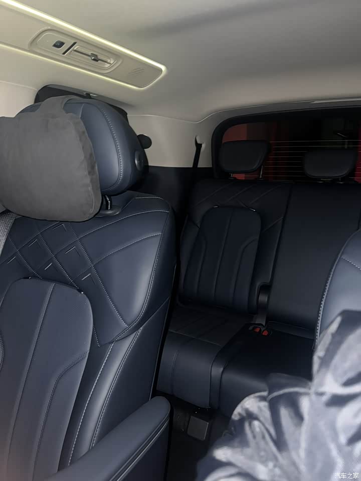 空间 空间这车能讲,轴距3米2,腿部空间直接换成了坐着的舒展感,我1米78,把主驾坐姿调好去第二排,腿能翘开,不挤,第二排两个独立座椅该有的功能到位,加热通风按摩都装上,跑长途打开这几项,人不累,第三排让我有点改观,不是那种临时小板凳,我坐进去腿还有余量,靠背能调角度,坐久也能换个姿势,第三排加热通风也给了,后面乘客不被忽视,储物格子分布得多,门板塞水,中控台下方镂空能放包,七座都立起来后备箱是502升,两只大号箱子再带些零碎没压力,第三排放倒能变到2700升,朋友让我帮忙搬一个小茶几,我直接推进去就走。
