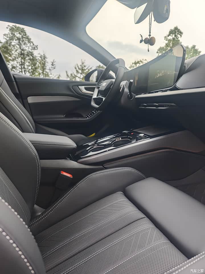 1,线性氛围灯,虽然不像其他车型灯带多,但是看着科技感很强哦,光感也很细腻出色,看着比较有档次。2,一体式座椅很帅坐着也舒服,是真软,包裹性强,两侧还有支撑点,急转弯也有不错的支撑性。3,门饰板很多地方也是皮革包裹,没有那么强的塑料感,在很多地方用了磨砂金属材质,比较有设计感,有档次感。