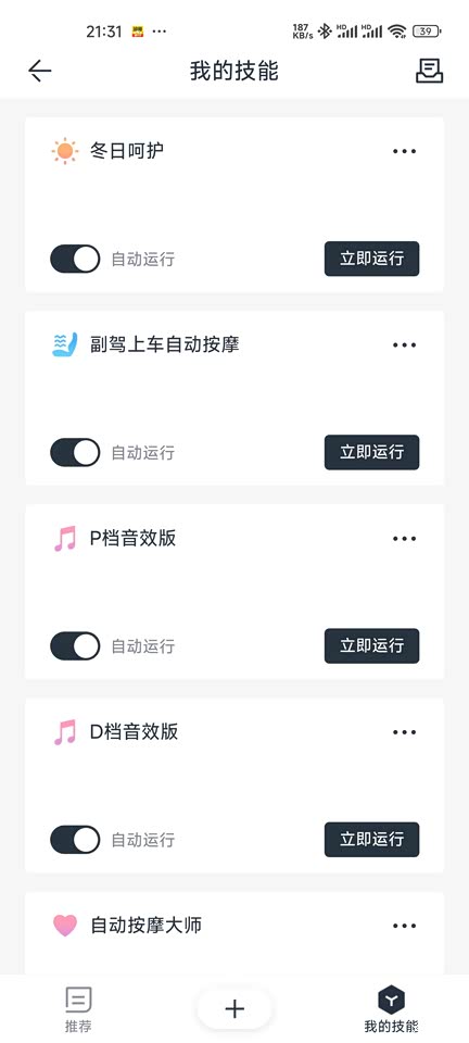 技能制造,是我最近用的最多的功能之一,比如,东北已经冷了,打车开门通过识别温度,开启座椅加热,空调和方向盘加热,不用每次上车都手动开启或者语音唤醒,还有档位的语音提醒,避免挂错档。 语音识别的准确率和相应速度也很快速,我不到三岁的女儿也能从容唤醒大蓝同学,确实不错。