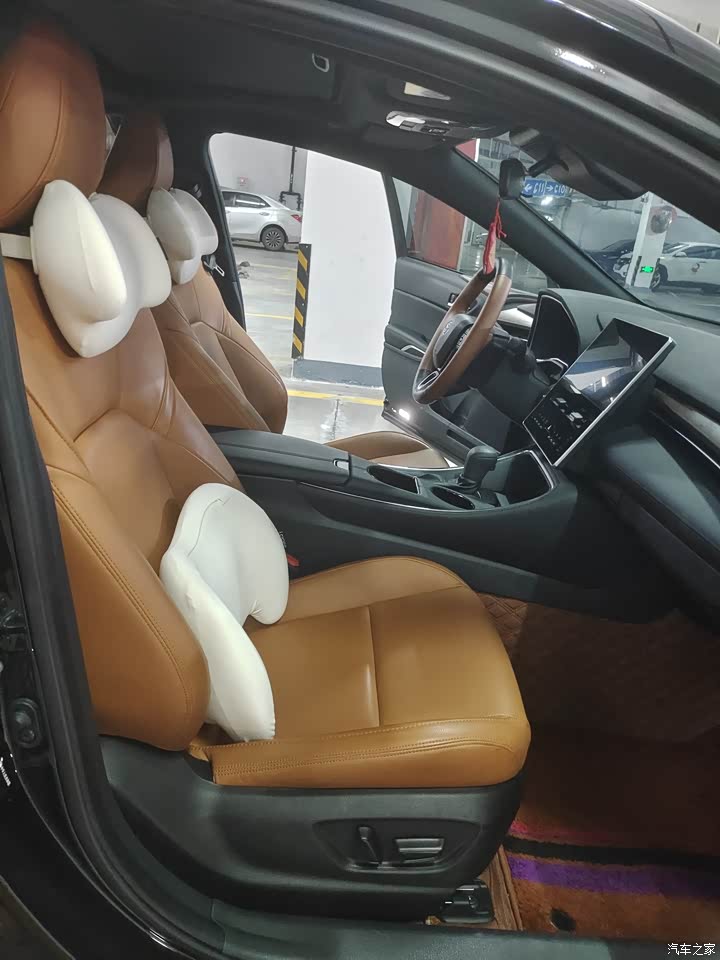 原版内饰是织布座椅,4S店送了我一套真皮,我特意选的棕色内饰,有人说老气,但是我觉得各花入各眼,外面是黑的,里面再是黑的不是很好看。车机都是用苹果CarPlay,你可以打开蓝牙再加数据线,这样子就不会掉链子,自从我用蓝牙链接苹果手机后,重来没有掉过链子,听说亚洲龙的信号部件,用的是华为的硬件,雀食好用