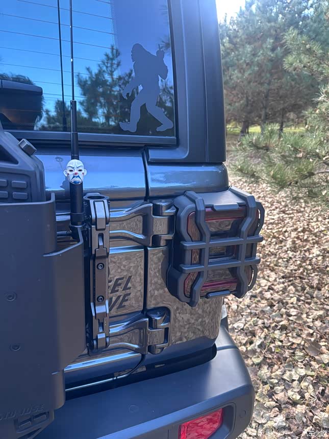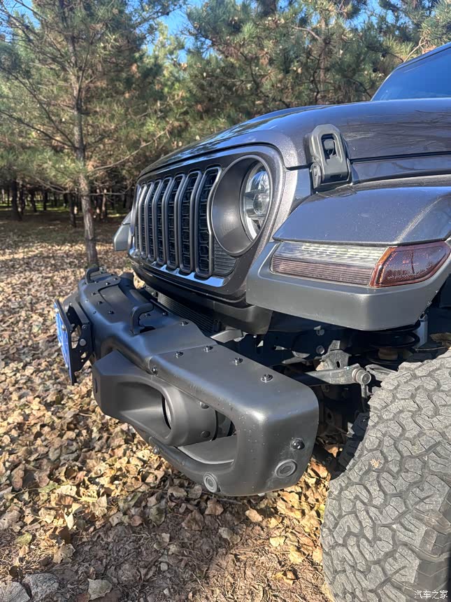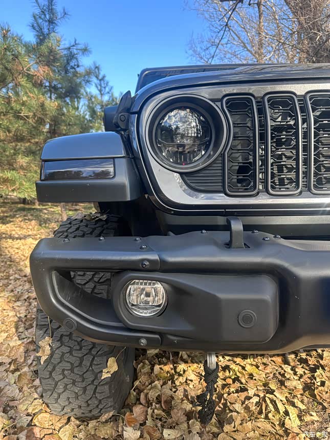 牧马人的外观,本身就是一种图腾。这份经典的硬朗与方正,每一根线条都充满了力量感。 · 经典设计:圆形大灯、七孔格栅、可拆卸车门和放倒挡风玻璃的能力,这些标志性元素无一缺席,构成了它独一无二的辨识度。每次锁车后都忍不住回头多看两眼,这种情感价值是其他设计无法替代的。 · 细节与气场:方正车身、外露的铰链和宽大的轮眉,都散发出纯粹的机械美感。我选择的颜色(陨石灰)在不同光线下质感出众,与车身黑色组件搭配相得益彰。 · 改装潜力:外观的另一大魅力在于“可塑性”。我后续升级的 十周年金属前杠. KMC 轮毂.百路驰KO2轮胎.mopar 侧杠.mopar 小木箱,立刻让整车气场提升了一个层级,视觉上更加饱满、威猛,也赋予了它更鲜明的个人印记。