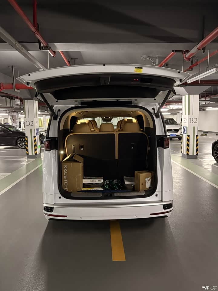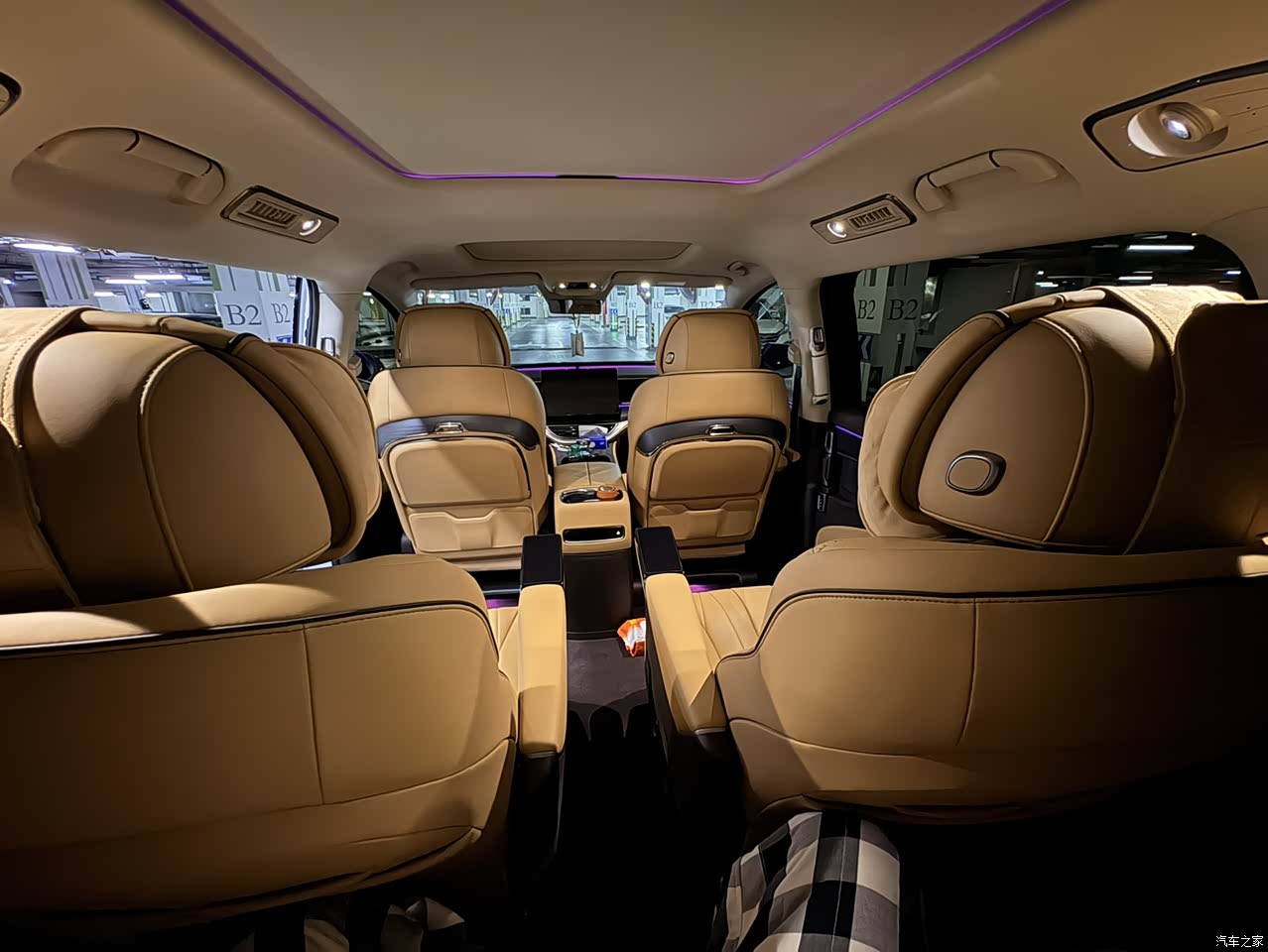 3110mm轴距带来的空间太实用。前排183cm身高坐进去,头部一拳半余量,中控下方的储物格能轻松塞进笔记本电脑和充电线。二排航空座椅是精髓,调到半躺模式,腿部能完全舒展,客户午休时都说“比高铁商务座舒服”。 最惊喜的是第三排,不是“小板凳”质感,176cm的同事坐进去,膝盖离二排还有一拳空隙,满员去临安出差没人抱怨挤。后备箱常规状态能放两个20寸行李箱,放倒第三排后,上次去西溪湿地露营,帐篷、烤架全塞进去了,410-2310L的容积变化太灵活。唯一遗憾是侧滑门开口高度一般,190cm的客户上下车得稍微低头。