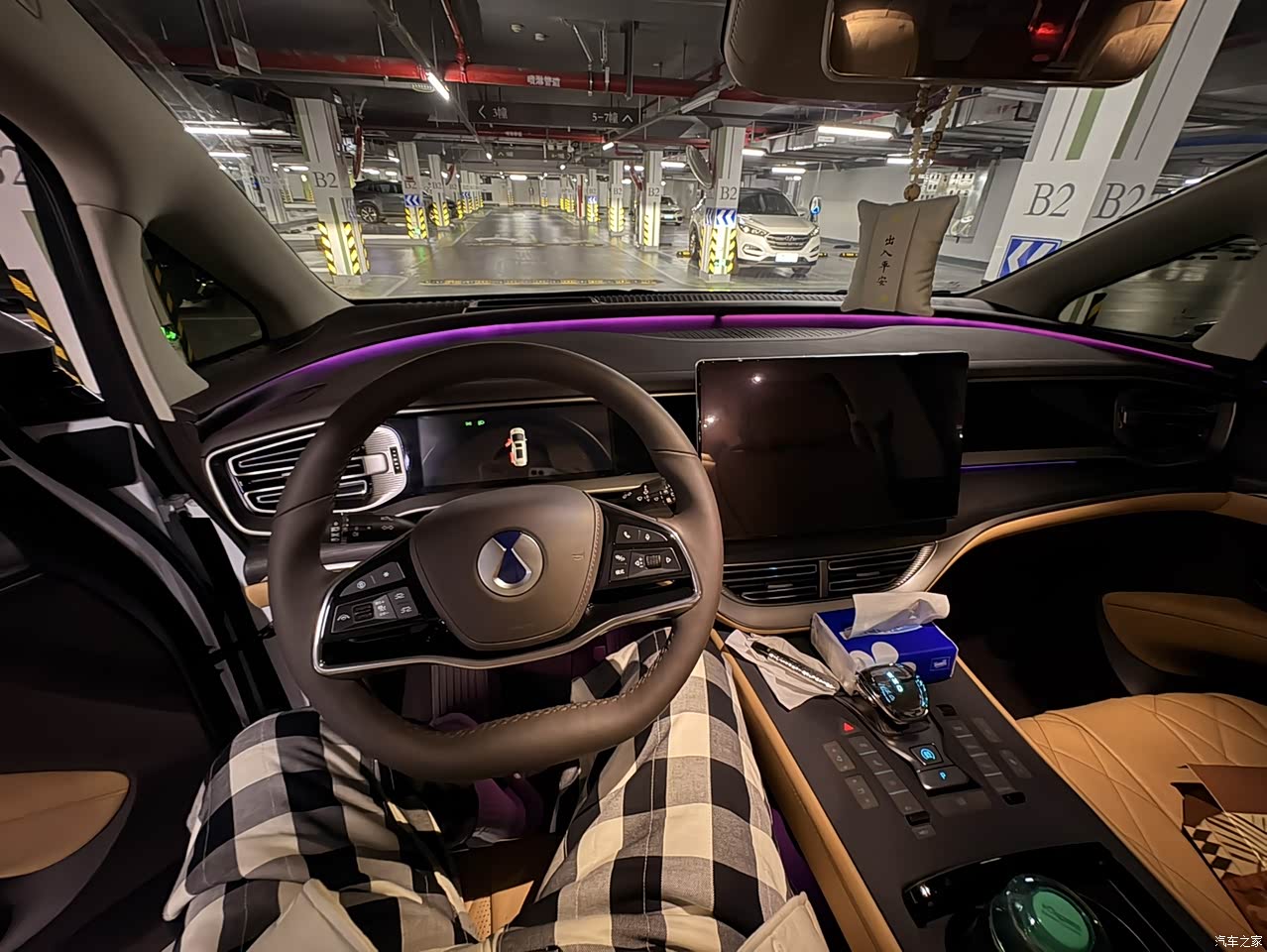 鎏年棕内饰选对了,搭配云影天光真木饰板,营造出低调的豪华感,比米色更耐脏。128色律动光幕很有氛围,晚上走之江路,调至暖光模式,和夜景呼应得特别好看。丹拿14扬声器音质不错,放轻音乐时能盖住部分胎噪。 但新车味还没完全散,暴晒后开门得先通风半分钟。棕色皮质座椅的缝线有点歪,仔细看能发现参差不齐,不过不凑近也看不出来。最烦人的是全景天幕,杭州夏天正午暴晒后,哪怕开着遮阳帘,头顶还是发烫,后来额外贴了隔热膜才好些。