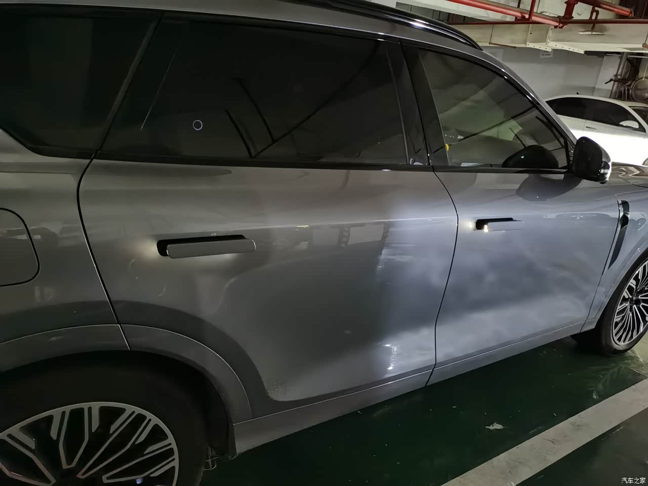 外观我拿的是琉璃紫,肉眼看过去比照片层次更分明,光线一换那紫色的深浅跟着变,平常是偏深的紫,金属颗粒很细,街上开过去回头的人不少,前脸的城市星空发光格栅挺有辨识度,里头200颗LED灯珠,九套动态光效随手就能切,晚上解锁时光点一层层亮起来,氛围立住了,小区保安跑过来问这灯是不是加钱选的,我回他原厂自带,车身接近五米,配20英寸轮毂,侧面线条收紧,整体挺流畅,隐藏式门把手弹出的那一下有仪式感,冬天有冰的时候最好提前远程热车把这块捂开,不然门把手容易冻在里面,我早上赶时间还用指尖在那抠了几下才动起来。