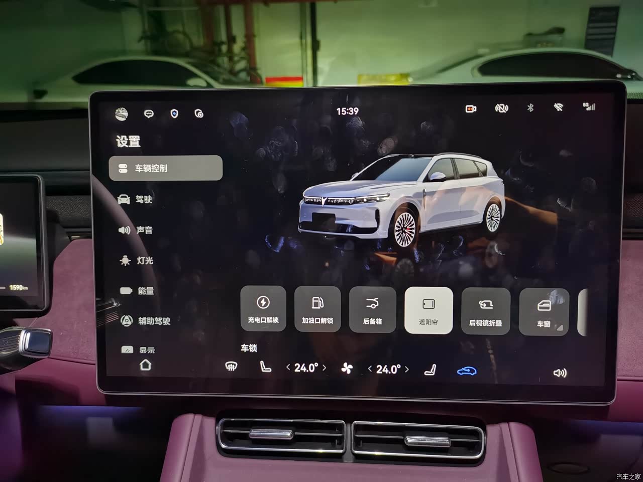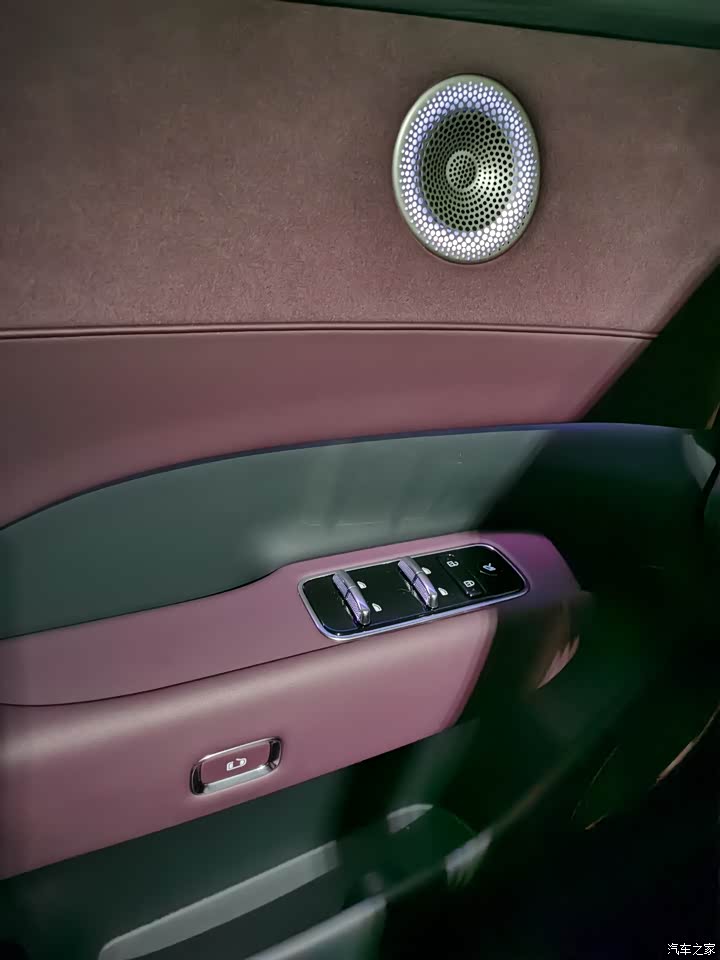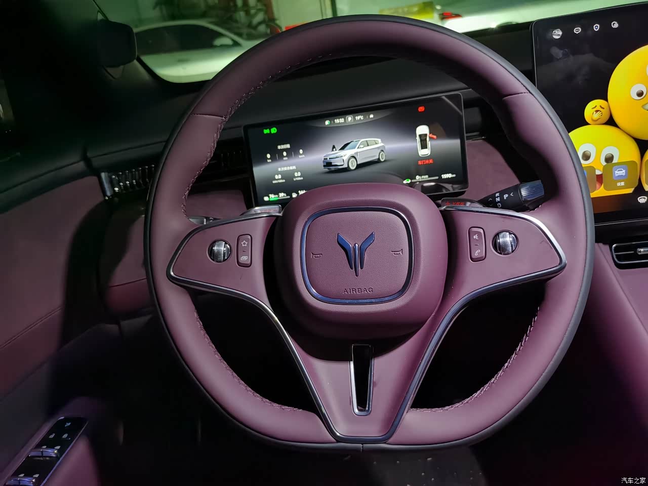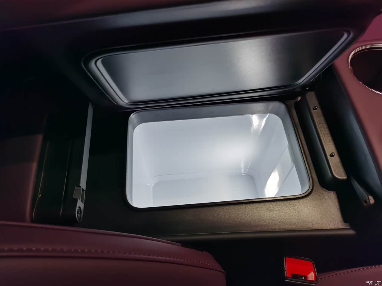 内饰我配的是和外观呼应的极光紫,坐进来这紫色调得稳,眼睛看着不累,朋友上车都说这配色选得对,座舱做的是浮光岛屿那套风格,大面积真皮包起来,伸手能碰到的地方都是软的,中控台和门板这些常摸的表面用的是仿麂皮,手背过去有绒感,沾了点灰拿软布擦一下就干净,副驾留给我老婆,她喜欢那个女王座椅带电动腿托,靠背能放到163度,她上车打开按摩,盖条毯子就补觉,手套箱基本被她的口红粉饼占满了。