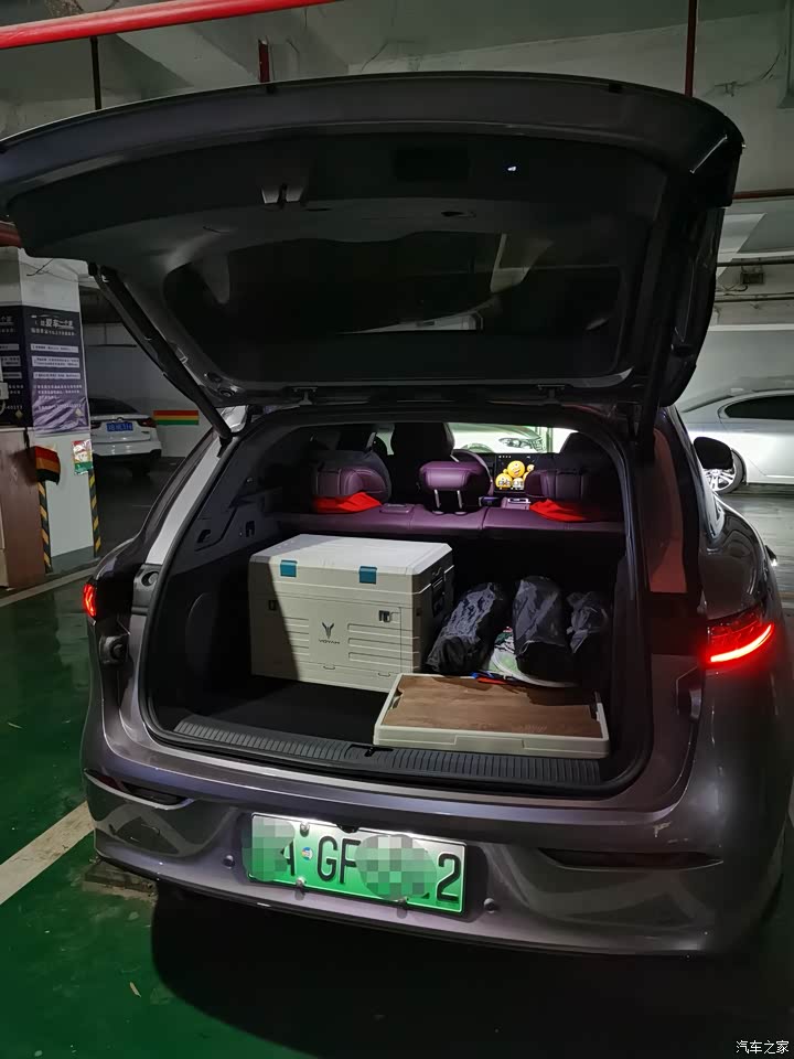 空间这块数据摆着,轴距2960mm,车宽1960mm,我178的身高,前排按我的坐姿,后排能把腿轻松翘起来,地台全平,中间坐人脚也自然,后备箱规整,基础容积688L,放倒后排能到1450L,之前帮朋友搬家把一个书柜塞进后排,关门没费劲,平时购物婴儿车加一套露营装备往里丢,拿取也不别手,车里做了33处储物位,门板储物格够深,三瓶矿泉水进去还有空,中控台下方做了镂空,我习惯把手机和钱包直接放那里,伸手就拿。