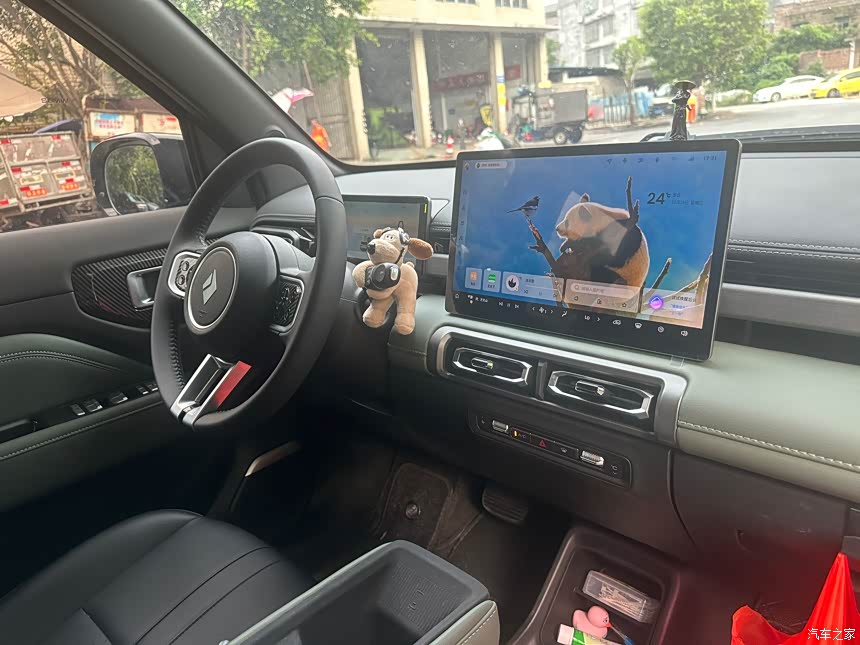 驾驶感受方面,没有智驾,就是最基础的手动操作,但其实也够用。方向盘很轻,转弯半径小,市区停车、钻小巷子特别灵活。底盘比想象中扎实,过减速带不会颠得人跳起来,走点非铺装路也稳,没刮过底盘。动力嘛,市区开完全够,起步轻快,高速上到100km/h后再加速就有点吃力了,风噪也明显变大,开音乐才能盖得住。