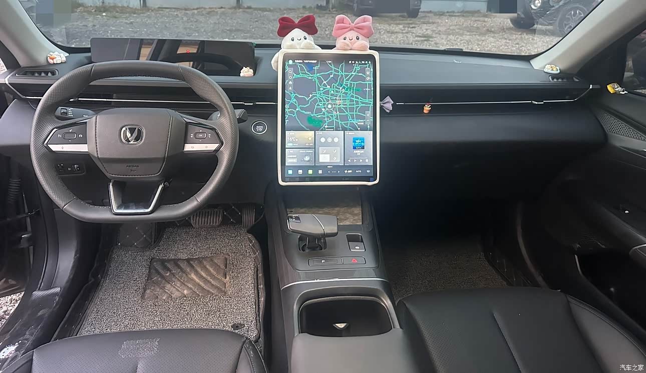 内饰设计挺时尚前卫的,但硬塑料太多,摸起来质感一般。中控屏用着还行,不怎么卡顿,就是功能比较基础。