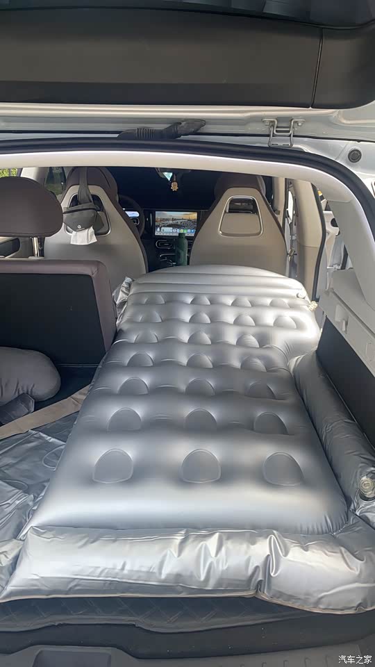 同级别的空间应该是数一数二的了,轴距超两米九不是盖的。充气垫子一铺,不要太舒服啊!坐后面的人腿部和头部空间都很大,跷二郎腿也没啥压力,爽得很!