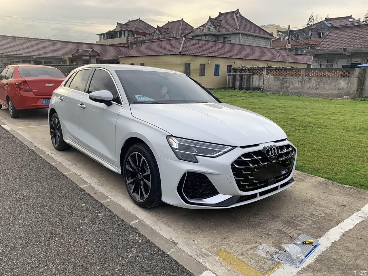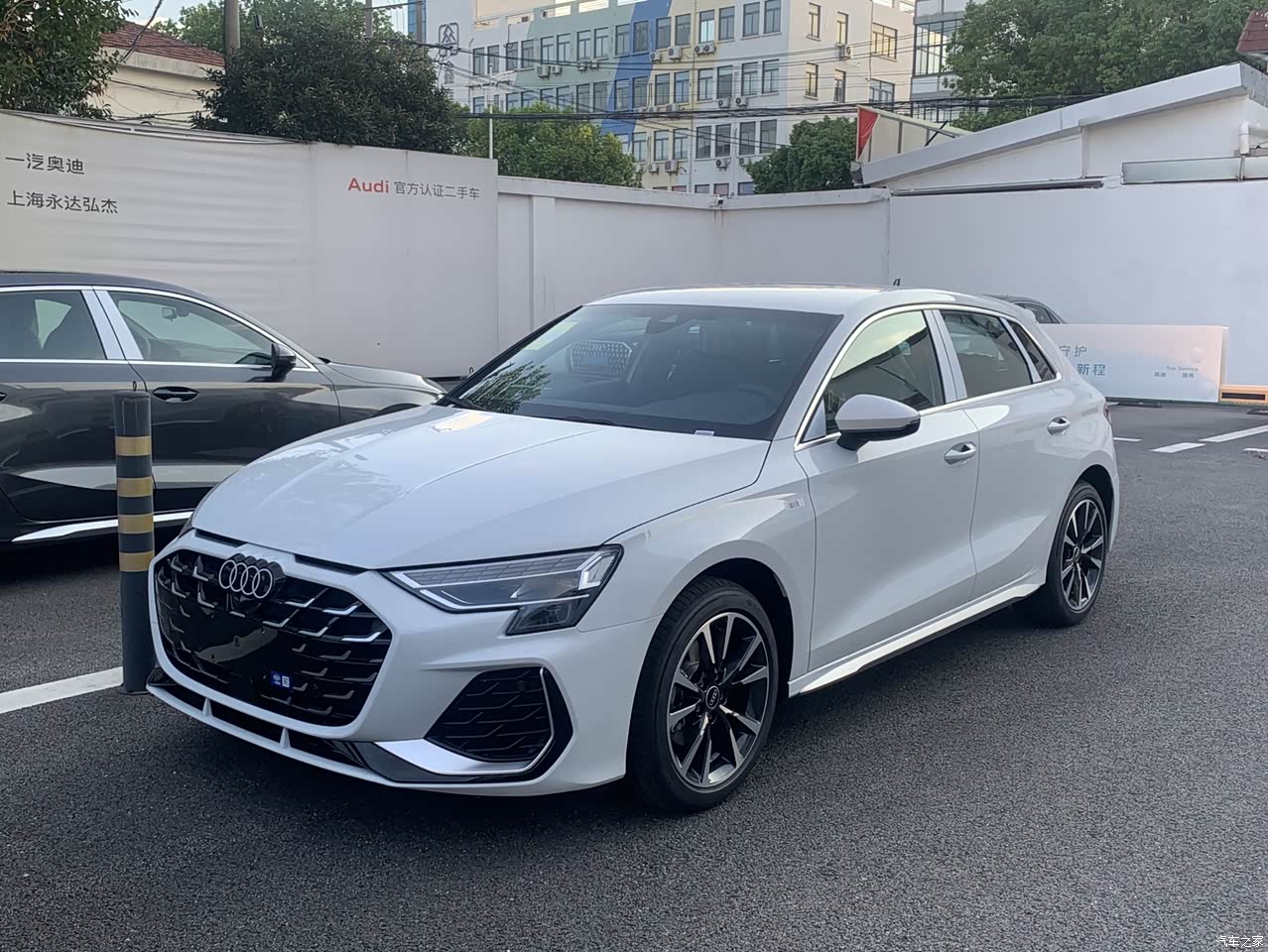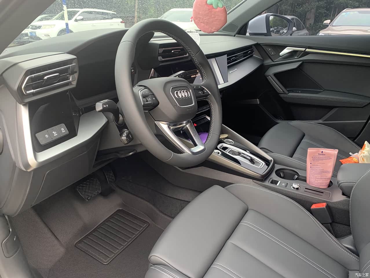 这是9月14号去4S店看到它的样子,因为一直考虑要不带天窗的,所以这天与销售联系过后得到刚刚有一辆不带天窗的A3到店,所以中午吃过饭就赶去4S店看车了。所以要说最满意的一点那就是这辆车是不带天窗的,因为之前了解下来现在低配车型比较紧俏,属于一车难求的局面。