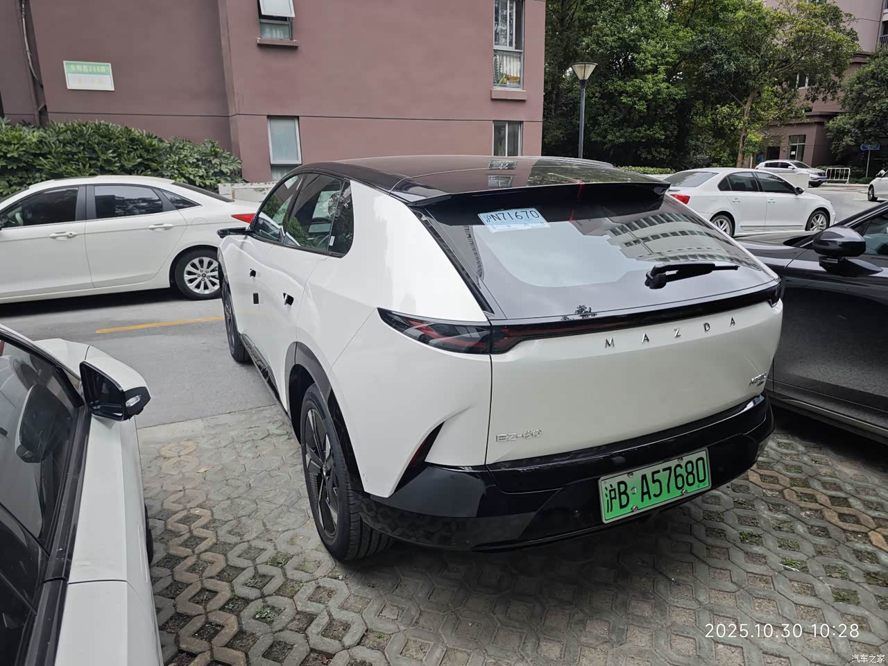 这里就纯发表自己的感想。 自己买东西,最重要的就是明白自己看重什么,想要什么。 今年年初开始看车,是我人生中第一辆车。我想买SUV,当时定下的几个基本要求是三点,外观好看、操控好、科技配置高(不包含智驾,我对智驾的要求没那么高,也是想自己多练练车)。 三点要求里,第三点的权重其实是最大的。我平时喜欢看科技数码新闻,对新事物接受度高,我就想要我的车有AR-HUD,流畅的中控,流媒体后视镜,甚至电子后视镜,舒适配置要有座椅通风等等。基于这些要求,我当时基本就定下了备选,价位从低到高有马自达EZ-60(四月车展的时候透露价格在15-20W)、小鹏G7、极氪7x、智己LS6、广本P7、大众ID4、阿维塔07、小米yu7、奥迪E5sport。这些车型价格相差很大,我自然也是挑能满足我要求的最实惠的了。 我等到了9月底,以上这些车型基本都发布了或者透露新款信息了。 最后我选了EZ60。我就不细细去说各台车对我而言的优缺点了,就直接说下我选EZ60的原因。 1. 基于深蓝平台进行的改进,这平台深蓝用了3年了,所以基本的稳定性有保障。中控各方面都能满足日常需求(广本P7就是因为中控不行被我筛选掉了,不然P7也是好车)。 2.底盘操控较深蓝有提升,不算顶级,但各路评价也都是不错的。 3.AR-hud+流媒体内后视镜+电子外后视镜,舒适性配置也有座椅通风按摩零重力等等。我想要的科技配置基本都有。(我知道对很多人来说电子外后视镜不适应,但对我是加分项) 4. 好看的外观。车头和侧面真好看,车尾及格吧。外观总体满意。 5. 顶配16w的价格。这定价是我这些备选车里属于价位低的。这价格也是最后让我发布会后下单的第一原因,作为我的第一辆车,买太贵的总感觉太冲动了。 我10月20几号提车。提车一周了,这些天我开下来,我很喜欢! 但也有我认为的缺点,就是上面提到的,较国产车比相对弱的车机软件和OTA频次、没有carplay、转弯半径不小、19寸轮胎235稍窄了一点、电耗不是第一梯队的(应该和深蓝差不多),作为电车加速不算快。 现在我每天都在车主群里混,马自达官方的人员也在里面经常互动。给我的感觉是马自达EZ60的团队有很多像我一样的年轻人,愿意接受新事物,也有热情去做好自己的工作。上周末参加了马自达的年度盛典,官方也说会继续做好中国市场,也给了车主信心吧。毕竟买合资电车、买马自达,在如今国产电车蓬勃发展的当下确实是需要自己做好比较的,让子弹飞一会儿吧。
