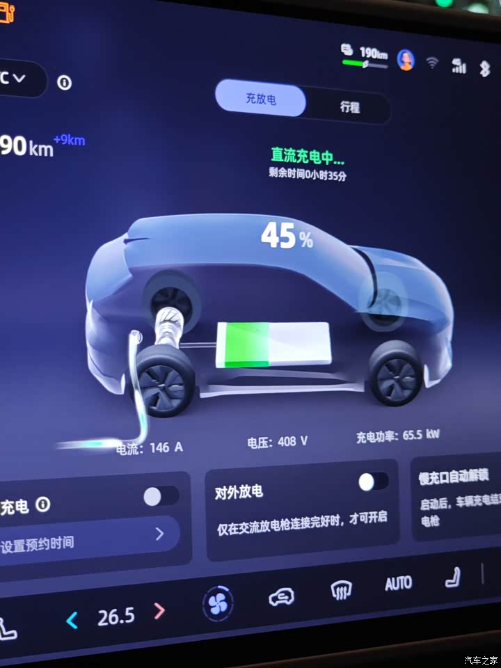 充电的话因为在外面快充都是一个桩两个充电口都有人。所以没有特别快。像这边充65%电量需要接近40min,只能说中规中矩。