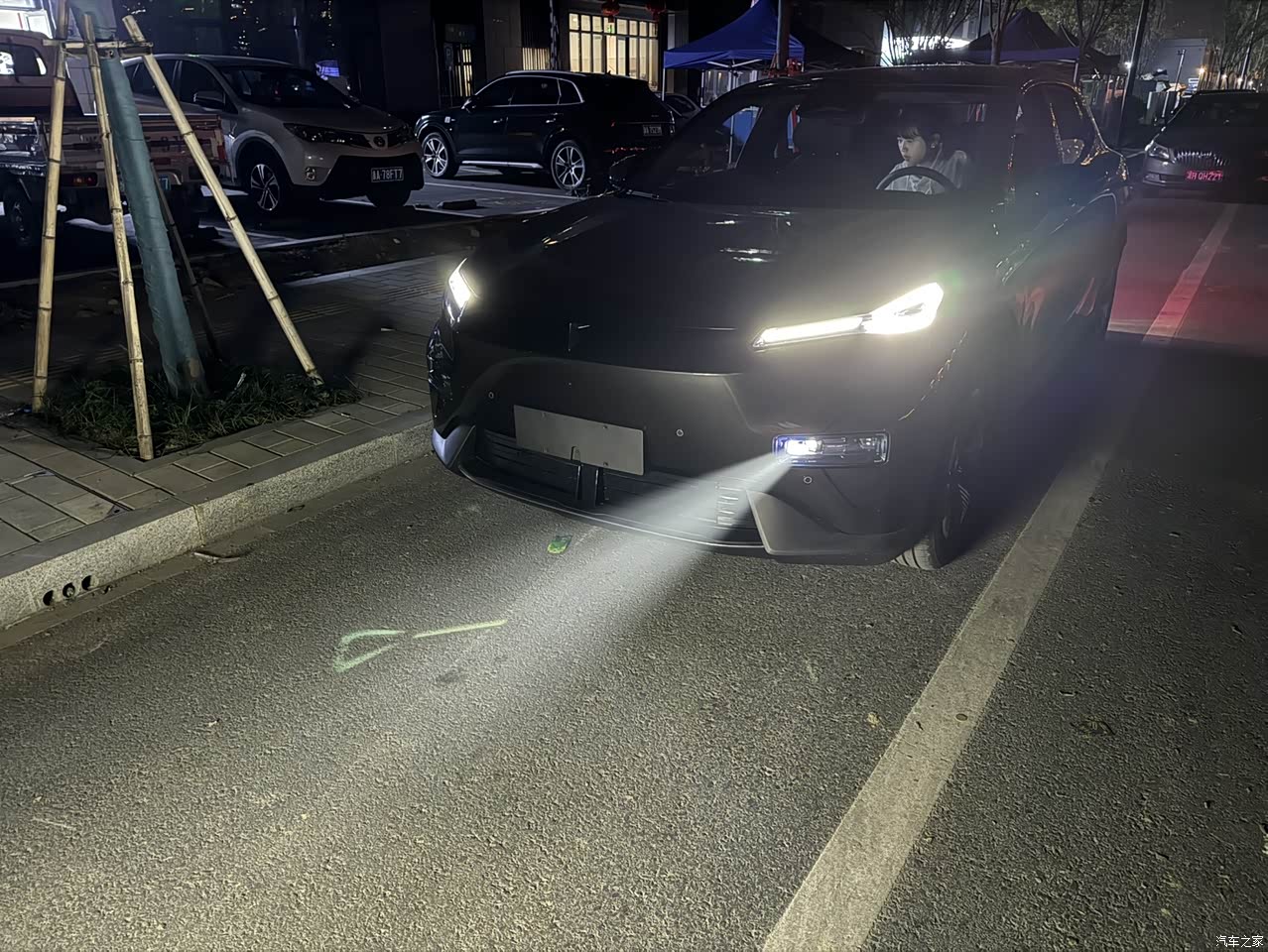 激光投影大灯是比较有趣,娱乐用的比较少可能我出去的少吧,但是远光灯增强效果还是非常不错的,还有打转向灯或者双闪的时候地上也会有投影效果,看起来很高级