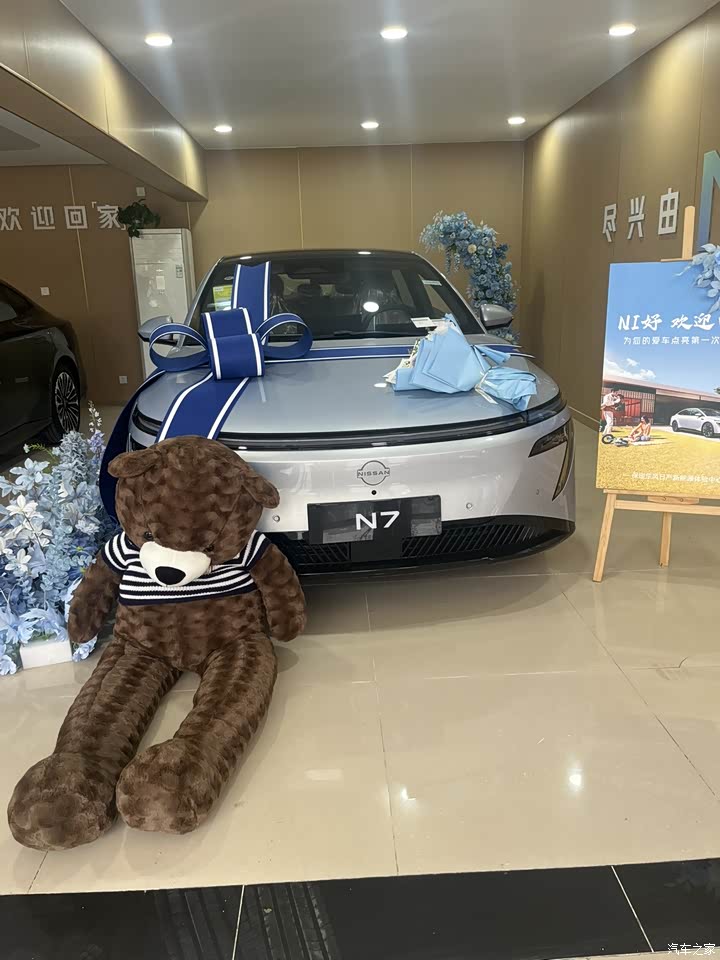 等了快一个月,我的日产N7 625MAX终于提车啦! 作为女生,选车最先看颜值——流光银车漆真的没选错!晴天是清清爽爽的金属感,阴天又带点温柔的灰调,贴个车衣后质感直接拉满,每次走近都忍不住多瞅两眼。 内饰选的玫瑰摩卡太戳我了!不是俗套的粉色,是带点棕调的温柔色系,和座椅的皮质搭配特别显高级,朋友坐进来都问是不是加钱选的定制款。625MAX的续航日常通勤完全够,周末开去周边玩也不用慌,中控屏操作简单,女生上手毫无压力。 目前开了一周,方向盘很轻,停车入库比想象中容易,自动泊车非常好用,现在都不用自己停车了,终于拥有了属于自己的小座驾,每天开车都超开心!