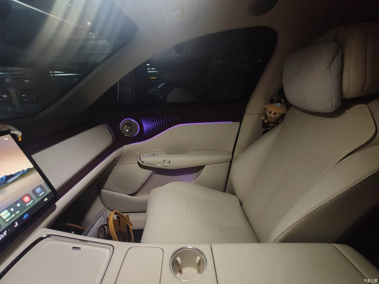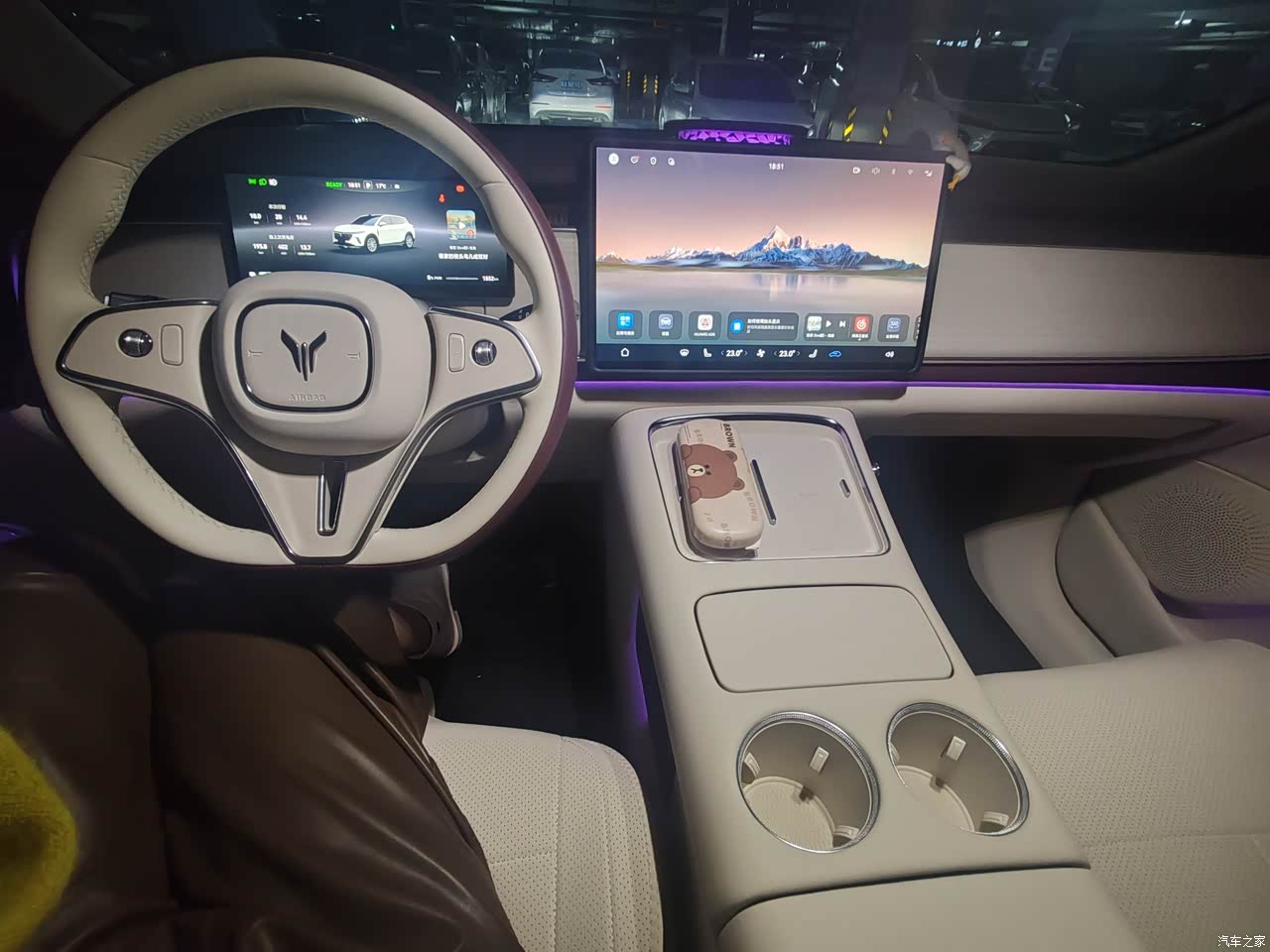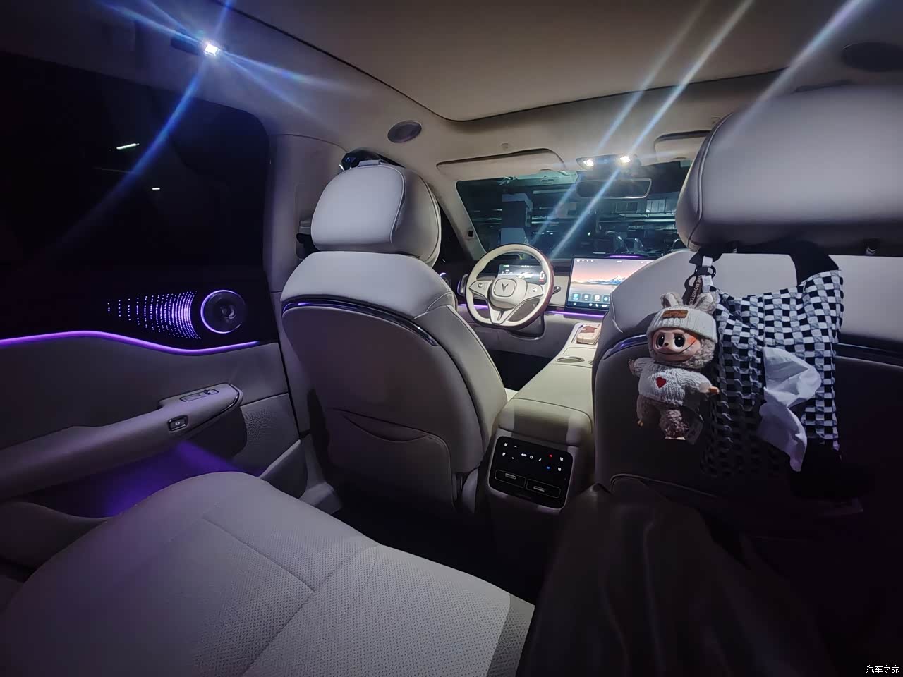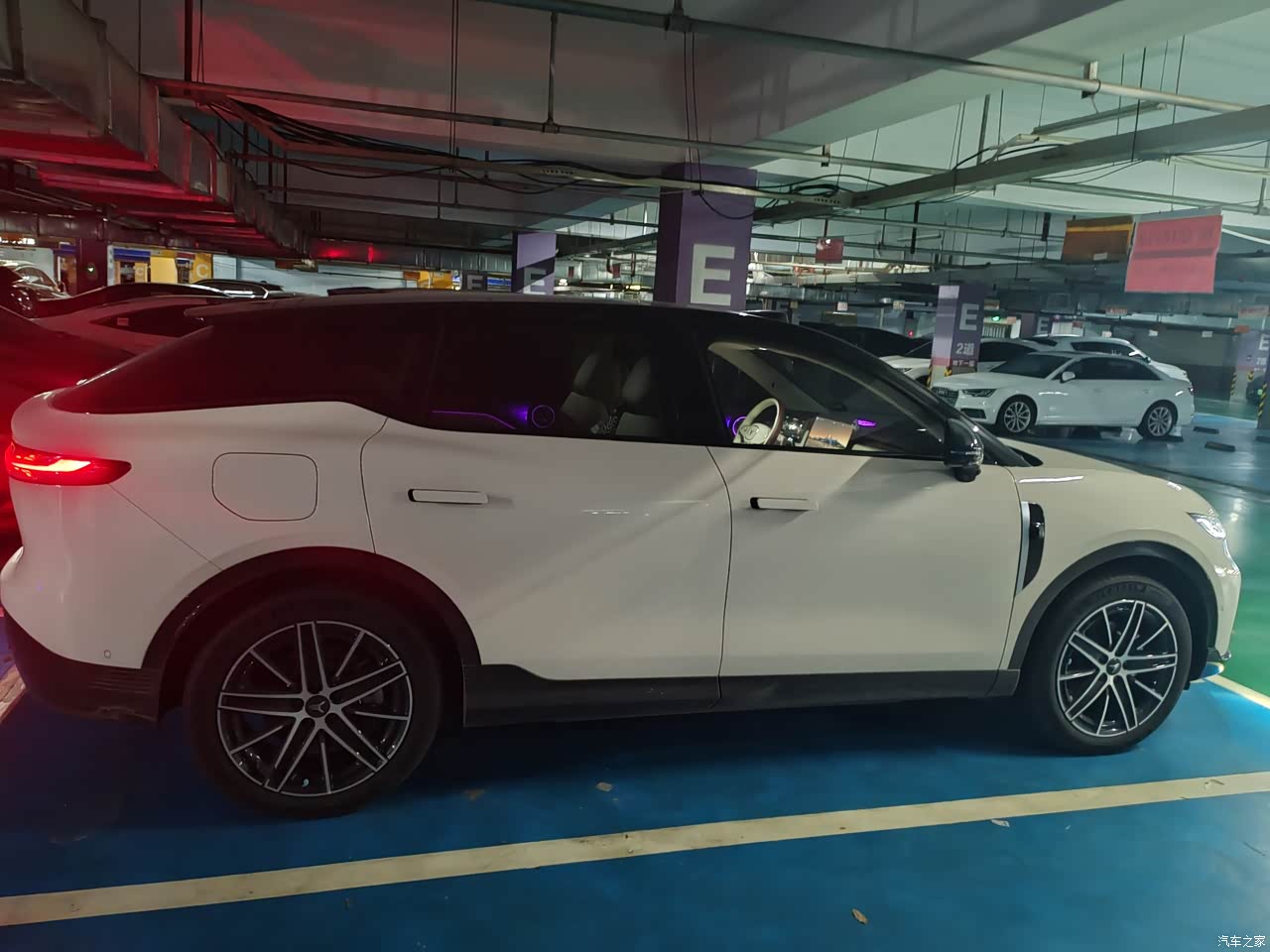侧面去观察的时候会更有韵味。其采用的白身黑顶这种配色方案,既显得十分经典,又能够很好地彰显出运动的气息。车门下方所设置的“Z”型线条,颇具设计方面的美感。再加上隐藏式的门把手这一设计,整个侧身的线条简直流畅到了极点,完全不会有同级别车型常常会出现的那种臃肿的感觉。而且,车身周围还隐藏着不少摄像头,整辆车共有10个外部摄像头以及12个超声波雷达。一开始的时候,我还觉得这些配置有些多余,不过后来在使用智驾功能的时候才真正发现,这些配置到底有多么的实用。再看尾部,那贯穿式的尾灯无疑就是点睛之笔了。其灯组的形状还是按照岚图LOGO的形象来设计的,到了晚上点亮之后,长长的且极为醒目,即便是和前车保持一定距离的时候,都觉得这尾灯特别的好看。