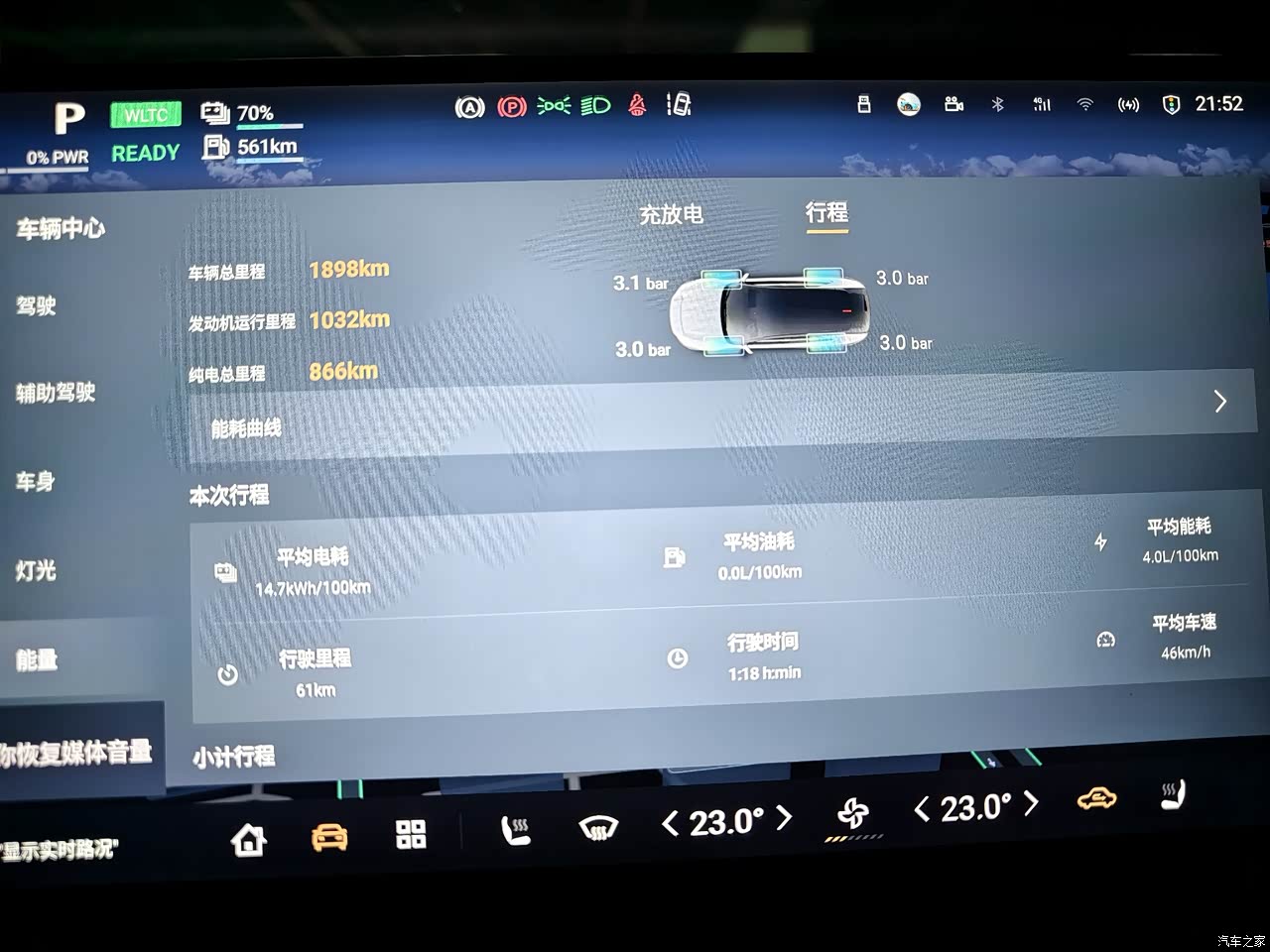 续航:纯电续航200km。在市区正常开,可以超过160km。续航达成率非常不错。 能耗:提车至今,表显平均能耗在5L/100km。高速表显百公里平均能耗在6.0的样子。 目前上下班都是用电,真香啊。