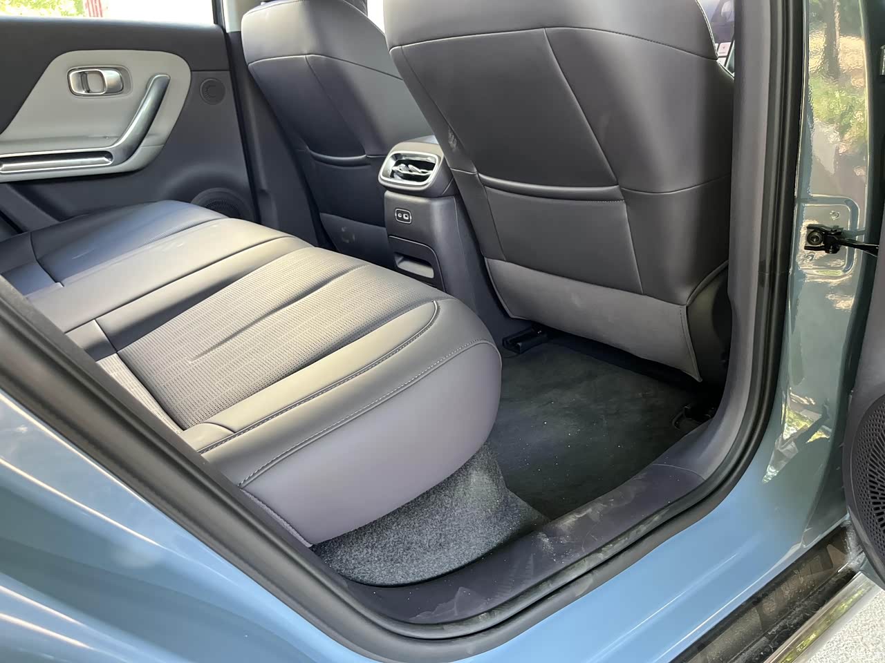 这台车的调校风格非常明确——舒适家用。电门的响应线性柔和,没有那种“蹿”的感觉,第一次开电动车的人也能轻松上手。转向手感轻盈,在城市里穿梭、掉头、停车都很轻松。