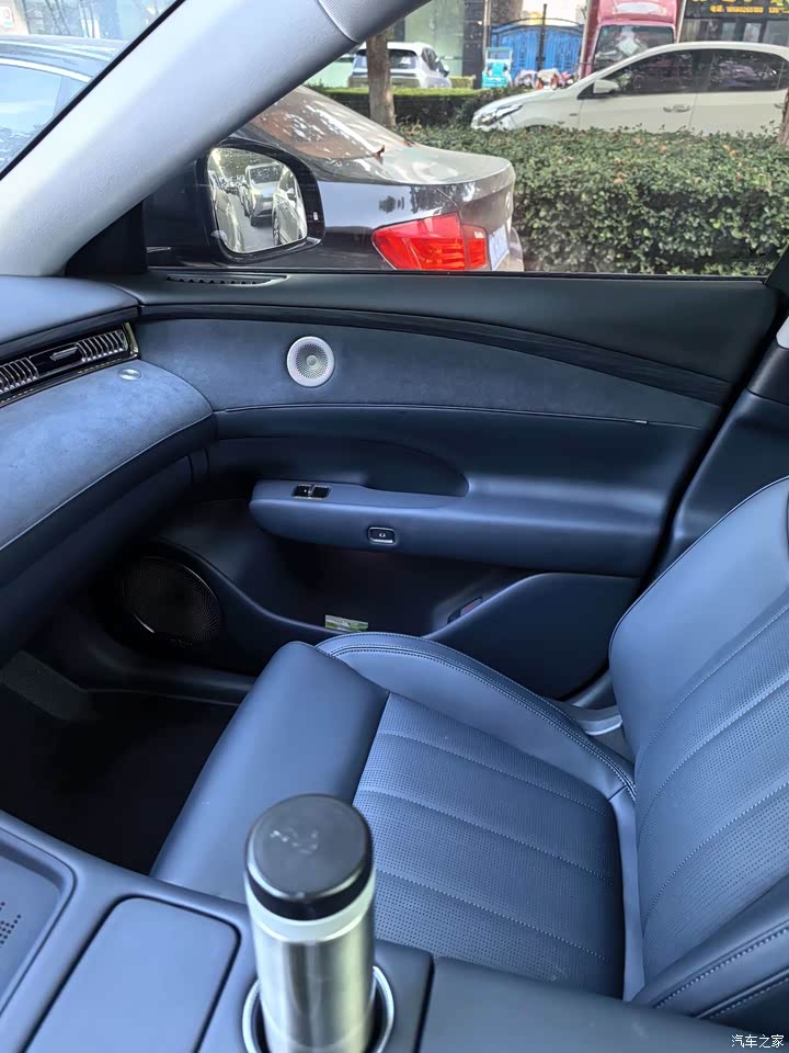 内饰: 内饰的设计风格很高级,它的颜色采用的是双拼式设计,海蓝色的内饰颜色也很好看,与外观颜色很协调,不会有太大反差效果。车内还是比较温馨,解压的,坐在车内不会感觉特别压抑。是简约的风格。车内的功能配置也比较丰富,hud,手机,无线充电,冰箱应有尽有。座椅的材质也比较柔软,也是比较亲肤的,没有明显的异味。