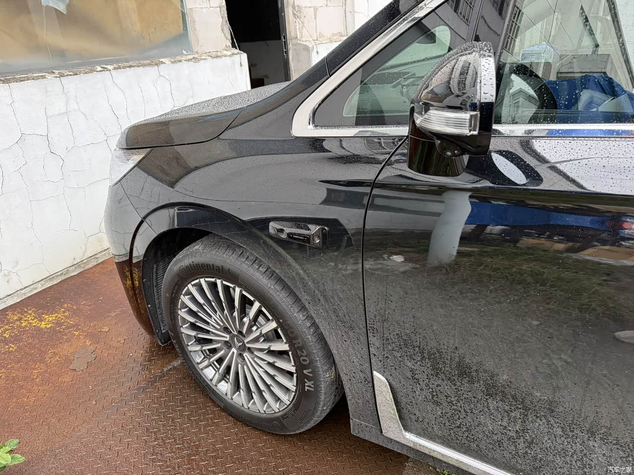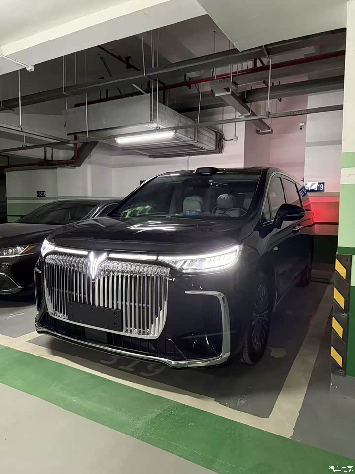 外观我拿的是玄英黑,整车看着像一身黑西装的状态,稳,力量感也在,前脸“鲲鹏展翅”的格栅密密地竖着,34根镀铬条在阳光下有亮有暗,远处看层次清楚,贯穿式LED日行灯做得长,1.8米一条线亮起来辨识度够,晚上路口一眼能认出来,车侧是标准MPV的盒子形,悬浮车顶搭配一条Z型腰线把视觉拉顺,20英寸的轮毂塞在里边比例合适,车尾贯穿尾灯熏黑处理点亮后边缘干净,锁车走两步回头看一下,这车安静停在那儿,家用接待都能撑得住面子。