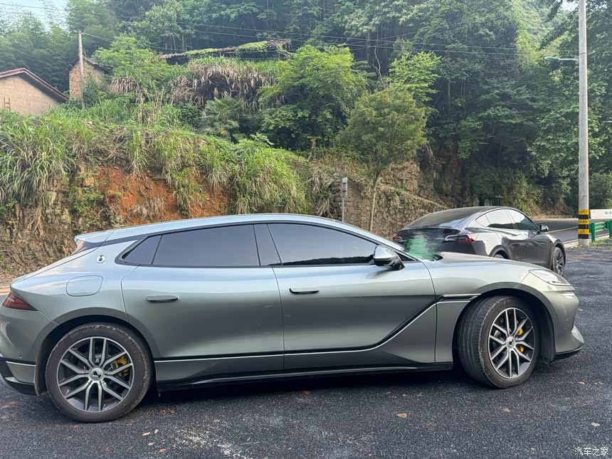 我选的是冬日青配色,整体车身颜色在天气好阳光充足的时候会有点灰色的感觉,阴天的时候又会有点淡淡的泛青绿色,低趴的姿态配合上流畅的线条,特别是腰线,还没上市的时候在网上看到很多人说不好看,割裂,现实中见到实车真的超级好看,完全击中了我的审美。买了之后身边有人调侃说我是“韭菜”,但买车本就是我买我开心,我买我喜欢,平时停在路边,一般过路的都会多看两眼,有种自己喜欢的车被别人的感觉,心里有种小小的满足感。