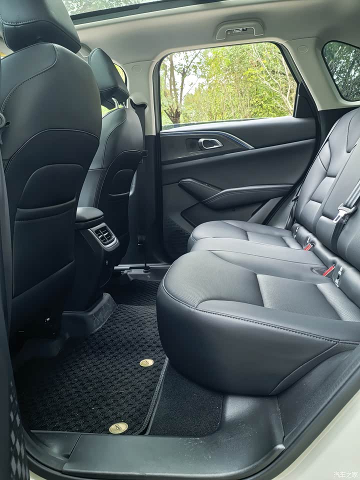 车内空间够大够用,本人身高174,前排调到正常驾驶座椅后,我前排靠背差不多在B柱位置,后排空间还很宽裕,跷个二郎腿也不局促。然后他这个后排座椅整体式比较平坦,即使坐后排中间座椅也很自然放松。后排地板基本上是平的,中间地板略微凸起一点点。后排靠背角度还能降档调节。后备箱空间当时对比了同级别车型,深度也还算可以,后排放倒后几乎纯平,我整个人躺上去后,在不利用前后排中间空隙的情况下,可以躺直。这点为以后自驾游或者露营等做床车提供了很多方便。此外,这个车空间最给力的是高度和头部空间,我座椅调到最高,头部空间至少还有两拳。整体驾驶坐姿也比较高,开在路上气场一点不输。