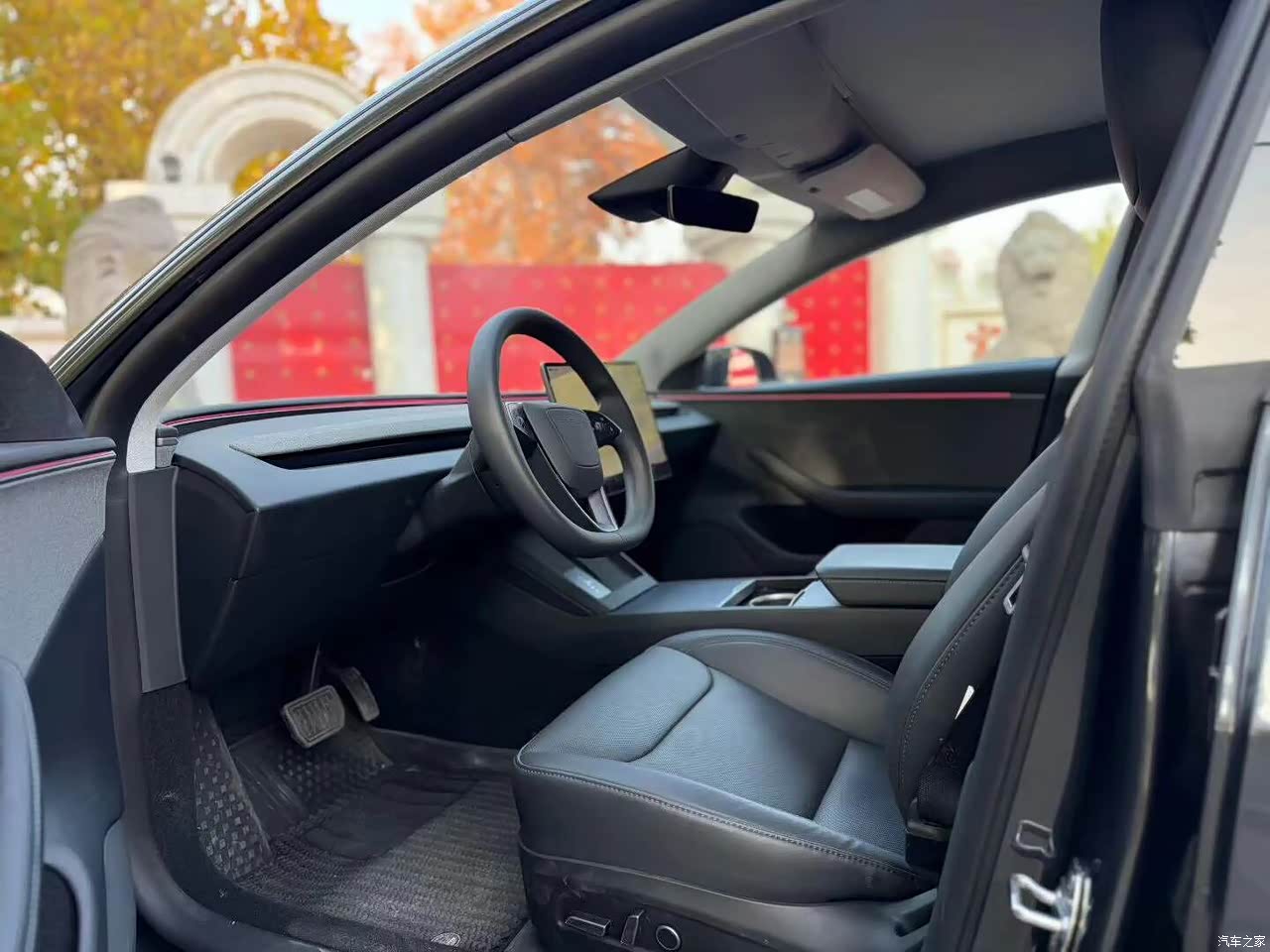 内饰简到不能再简,就一个大中控屏,连仪表盘都没有,刚开始老低头看屏幕,开车老分心。用料也一般,到处都是塑料,不过好处是好打理,咖啡洒了一擦就干净。
