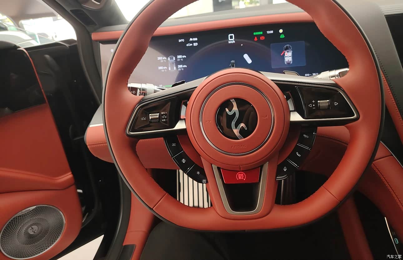 仰望U7的内饰可没有保时捷那样内饰需另选加价的毛病。全车内饰用的都是真皮,它的中控大屏是曲面的而且是整体嵌进去的,车机系统自然就是比亚迪自己的系统。个人认为有些小遗憾的就是中控少了个宾利那样机械怀表,有的话那就可太尊了,哈哈哈。关键咱们是想加装还不好加装。