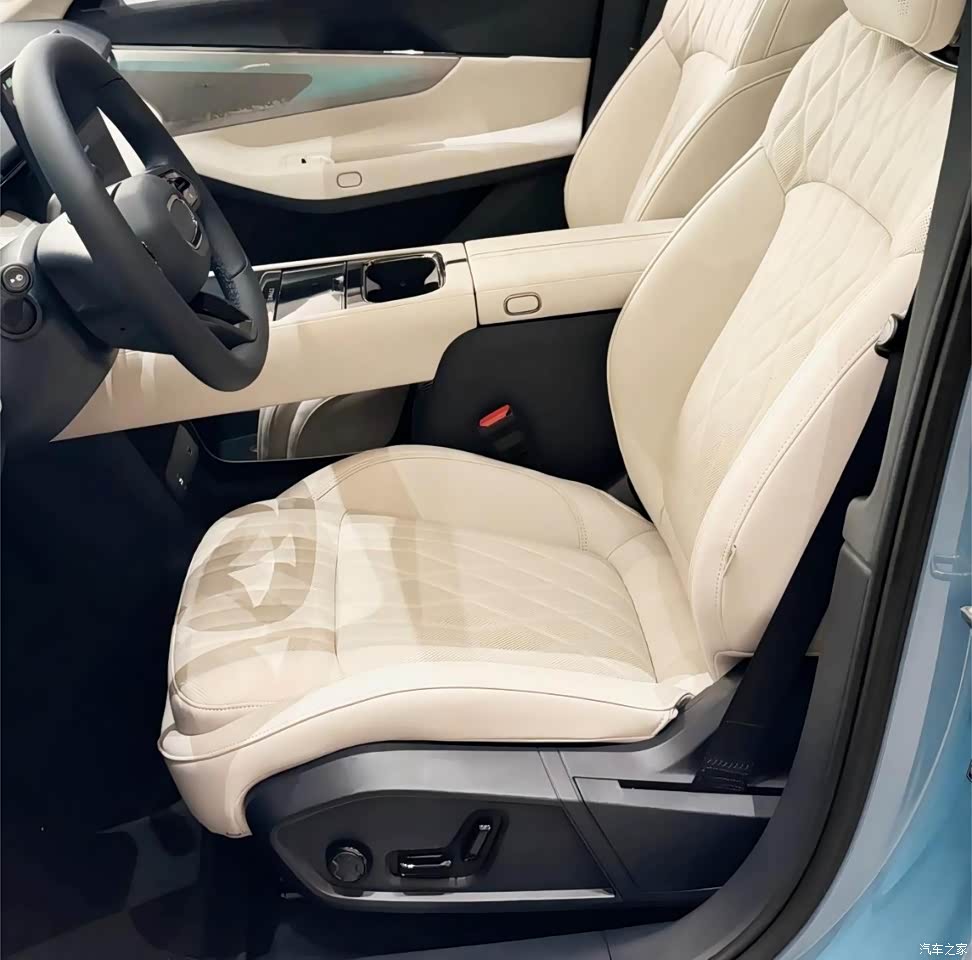 米白色的内饰很显高级,座椅上的菱形缝线做工精细,摸起来质感不错。中控台的布局简洁大方,操作起来也方便,平时开车时想调个空调、切个歌,伸手就够着了,很顺手。