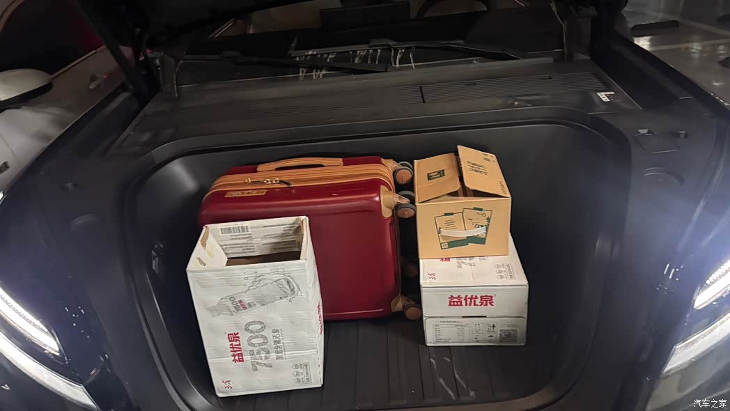 前后备箱的组合真的太实用了,家庭出行的“大包小包”再也不用纠结取舍。前几天带娃去公园野餐,折叠婴儿车直接塞进前备箱,再塞野餐垫和背包,还有剩余空间;后备箱放了孩子们的滑板车,折叠椅还有一些杂七杂八的东西可以放在后备箱下沉空间。 上周回老家,2个28寸行李箱、两个双肩包,再加上家人准备的土特产,前备箱放杂物、后备箱放行李箱,分类收纳得整整齐齐,后排通道完全不拥堵,上下车也方便。