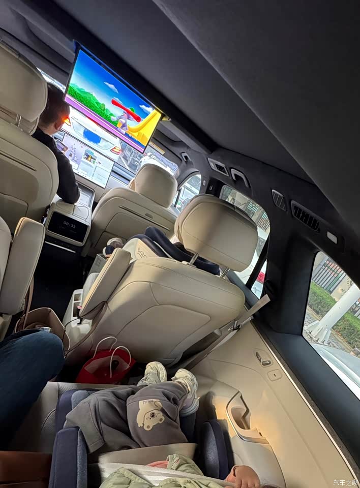 对于二胎+长辈的家庭,空间是刚需中的刚需,乐道L90完全超出预期。平时接送孩子上下学,二排空间宽敞到让娃实现“活动自由”—坐在二排左侧翻绘本、膝盖离前排座椅还有两拳多;老二在右侧可以在小桌板上摆弄小玩具,二排座椅支持前后调节和靠背角度调节,还可以按摩,家人陪娃出门时,把座椅往后调,陪孩子看书时更舒展,长时间乘坐也不腰酸。 周末全家5口出行是常态,之前开Model Y安全座椅安装两个没办法坐人,孩子需要抱在怀里,很不安全,偶尔需要6人出行,乐道L90的三排座椅完全能hold住。我妈坐第三排头顶离车顶有一拳,膝盖离二排座椅也有一拳多,完全不压抑;更贴心的是第三排配置:杯架、Type-C充电口、手机架一应俱全,我妈坐后排能随时给手机充电,放个保温杯也方便,细节拉满。