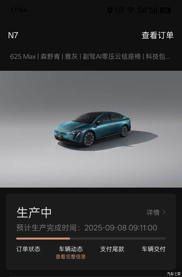 新车到手使用1个多月了,和大家分享一下提车的历程以及个人使用过程中个人感受的优缺点,大家可以作为参考: ①提车历程: 大学毕业了工作两年一直在开家里的油车,由于油价上涨,再加之发动机排量大一些,钱包实在是有些撑不住,于是和女朋友一起去各个4s店看新能源汽车。最开始体验的是特斯拉的model3和y,在试驾过程中,驾驶体验很好,但是女朋友的乘坐体验不是很好,这也可以理解哈,毕竟特斯拉是偏运动的车,于是再三商定后决定再看一看其他品牌的新能源汽车。于是就看了小鹏、埃安、极狐、吉利、长安、五菱等等市面上能见到的大部分车型,最后决定提极狐S5的556max车型,但是在和家人去4s店的路上,路过了日产的4s店,看到了门口的日产N7这款车,由于预算有限,加之N7这款车从外观看上去是B+级别的轿车,于是就想走,但是家人很感兴趣,于是才询问了一下N7,这款车,发现价格、配置以及驾驶体验都满意,于是第二天直接订车,8/24在天津订车,9/15提车,过程很顺利。下面和大家分享一下使用感受。 ②外观感受:日产N7这款车在这个价位里的颜值绝对是非常能打的,我的车是625max版本,没有选装花瓣轮毂(个人比较喜欢19寸的原装轮毂,很有商务气息),将近5米的车长,再加上无框车门,科技大灯,完全是跑车和商务轿车的结合版。 ③空间感受:接近5米的车长,妥妥的B+级别轿车,个人开车主驾驶座椅喜欢将座椅靠背移至B柱靠后位置,但是即使这样,后排还可以翘腿,大概还有两拳的距离,再加上后排地板是平的,家用完全没有问题。 ④内饰感受:我选装的是灰色内饰,搭配黑色的顶子(个人不太懂内饰的叫法),一系列的皮包裹、翻毛皮等等,显得车很高级,日产的大沙发更值得一提,AI零压座椅搭配真皮,完全不像这个级别的车。 ⑤智能化感受:因为我比较喜欢机械原理,所以一直不太相信智驾之类的功能,但是这个车的智能化体验让我很惊讶,不管是车道保持还是智能驾驶,都非常的nice,但是提醒大家,车多复杂路况还是要使用手动驾驶,相信自己。车机使用了这么久,没有遇到过网传的黑屏死机等情况,平时使用车机导航、听音乐、看电影都很丝滑,小尼也很给力,大部分指令都可以完成。车辆的一些自动化的功能比如无匙进入,自动折叠后视镜,电动后尾箱,升降音响,头枕音响,开门按键,后方来车提醒,车道纠正等功能都很好用。 ⑥驾驶感受:我开过2.0T,2.4L,1.5T,1.4L,2.5双擎,以及小型电车,而N7这款车,给我的感受更像一个结合体,舒适模式下像一台小排量的车,运动模式下像一台性能猛兽,日常使用,我只开舒适模式,提速完全够用,方向盘的话,也很灵活,电门稍有延迟,坐在N7里面,没有其他电车的眩晕感,座椅也很给力,可以自动调节舒适坐姿,还带有按摩功能、通风加热,保证长途开车不疲惫。开启舒适停车的情况下,停车也很柔,让人很舒适,而不是一踩刹车一点头。 ⑦大家关注的续航问题:N7这款车使用的是欣旺达电芯,自行包装的。很多人觉得电池还是选宁德时代的比较好,但是我个人感觉电池这种东西,一是看电压,密度等数据,二是看使用的商家(目前我的了解苹果手机、理想汽车也都在使用这款电池),三是看车本身带质保。所以我并不担心电池不行,大批量使用的东西不一定是好,也有可能是跟风。我的是625max版本,续航的话,纯高速450km电耗16度/百公里,下道520km13度/百公里,均为满载,全程听歌、手机充电、开启自动大灯、空调时开时不开(基本一路对半开对半关)。续航最关键的因素是和驾驶人员有关系,我个人开车比较柔,不喜欢电门踩太深。电池的话,如果有慢充建议大家使用慢充充电,比快充实,如果没有慢充,建议大家隔几次快充就用慢充校准一下。 ⑨和大家分享一下我的N7配置:我订购的是日产N7 625max 森野绿 加装科技包(音响、大灯) AI零压云毯座椅 热泵空调,没有选装冰箱和运动包。8月订车时,只有热泵空调是需要花钱加装,其他均为免费赠送,很不错。 ⑩个人认为不足之处:轮胎型号是225 45R19,原厂配的轮胎是玲珑sport master,这个车的自重在2吨左右,如果使用这个型号的轮胎,原厂配马牌、米其林一类的轮胎比较有保障。 625max版本的车机哨兵模式、行车记录仪只能储存在车机自带的内存中,车机是32+256的配置,但是实际存储内存(抛去车机自占内存)还剩下80G左右,我自行准备了512G的储存器,只能手动导入,希望厂家可以更新版本,可以将车机的视频保存路径设置为外置储存器(pro、air版本可以设置) 后备箱的程序很乱,必须要拿钥匙站在车尾才能开启后备箱,或者在车机中开启,希望厂家可以更新,钥匙在车内时,按后尾门开关就可以打开。 副驾驶的座椅只能前后调节,不能上下调节,导致副驾驶的视线很低,后排座椅也不可以放倒。 最后,综上所述,日产N7这款车,我在这段时间的使用过程中还是很满意的,家用很合适,如果大家每年用车公里数很多的情况下,这款车很合适,价格也非常亲民。如果评分的话,5分为满分,我会打4.6分,N7这款车刚刚上市不久,除我个人的感觉不足之外,很多网友也有讨论不足,N7的路还很长,需要改进的地方也很多。加油。