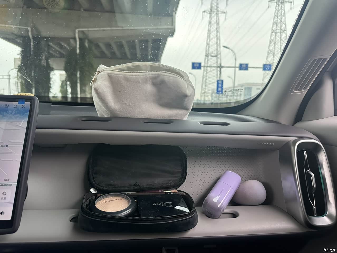 尤其是副驾的摆台,真的是百变副驾,官网有副驾小桌板,但是说那个不防滑,还在犹豫中……,副驾的设计还在各种风格中挑选, 要是有了这辆车,不如直接把副驾调成妆发专座 -自带柔光环的化妆镜秒 杀梳妆台,磁吸抽屉 里粉底刷纹丝不动,连高光棒都卡在专属槽位里! 等咖啡的功夫就能刷完睫毛打腮红,甚至能边啃饭团边卷刘海(叉腰)!