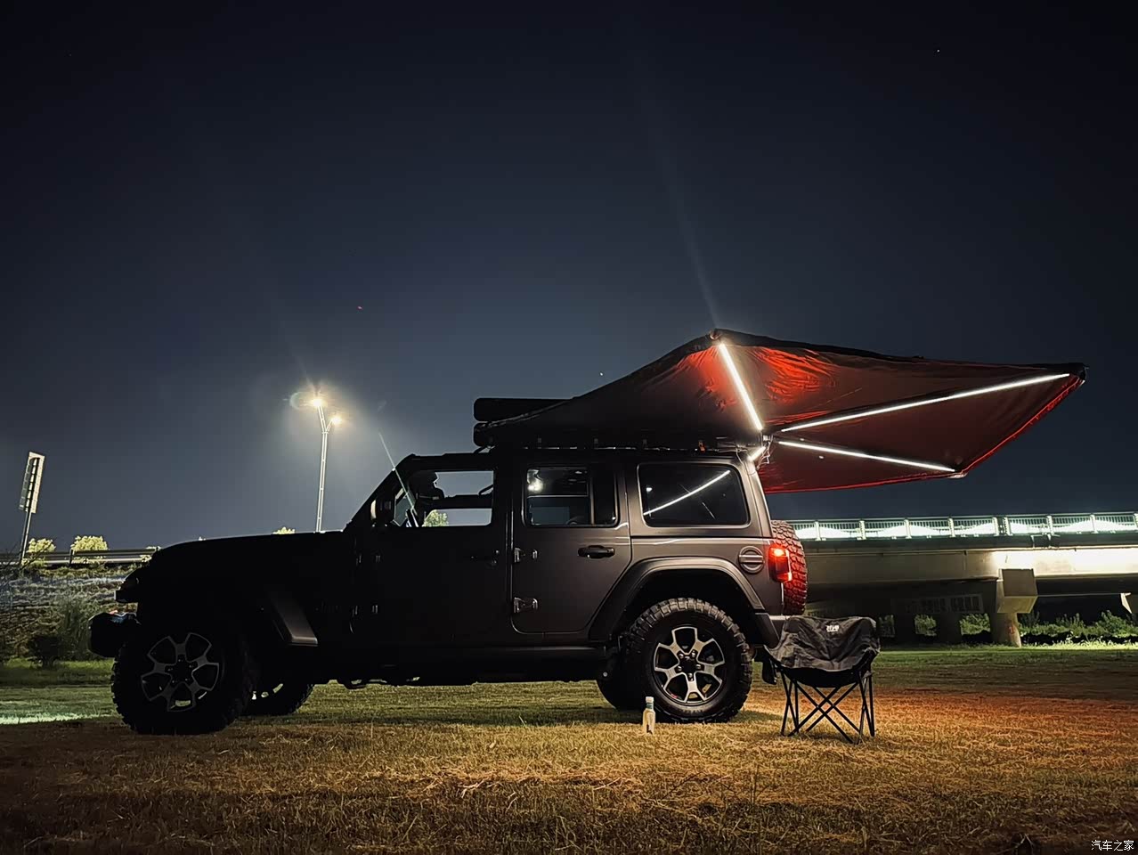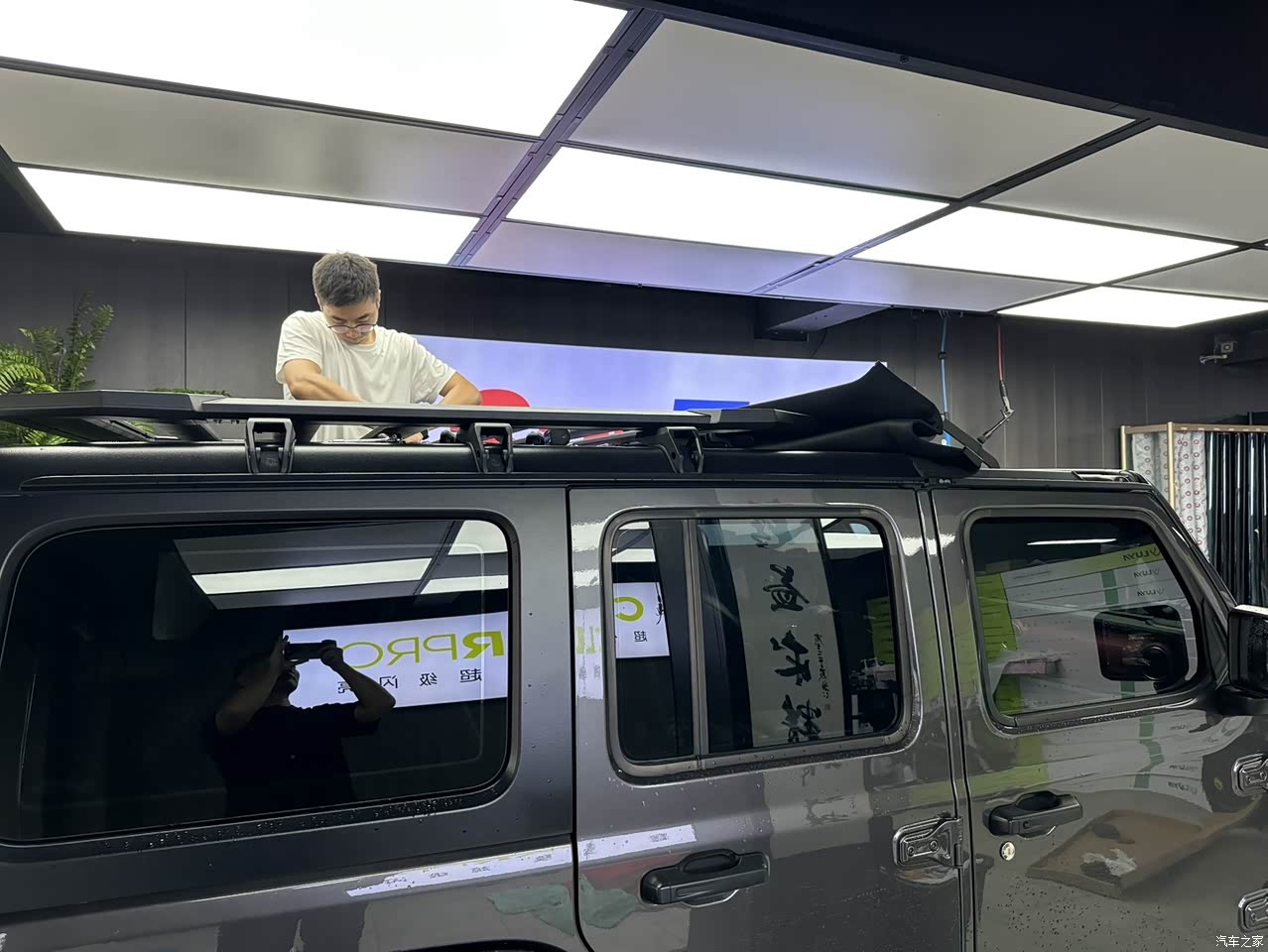车子目前还是原厂at胎,底盘避震结构没有动。不过行驶超过90码后噪音很大。 不排除加装了车顶平台,270度侧边天幕,还有一个bestop的半软顶敞篷的缘故。