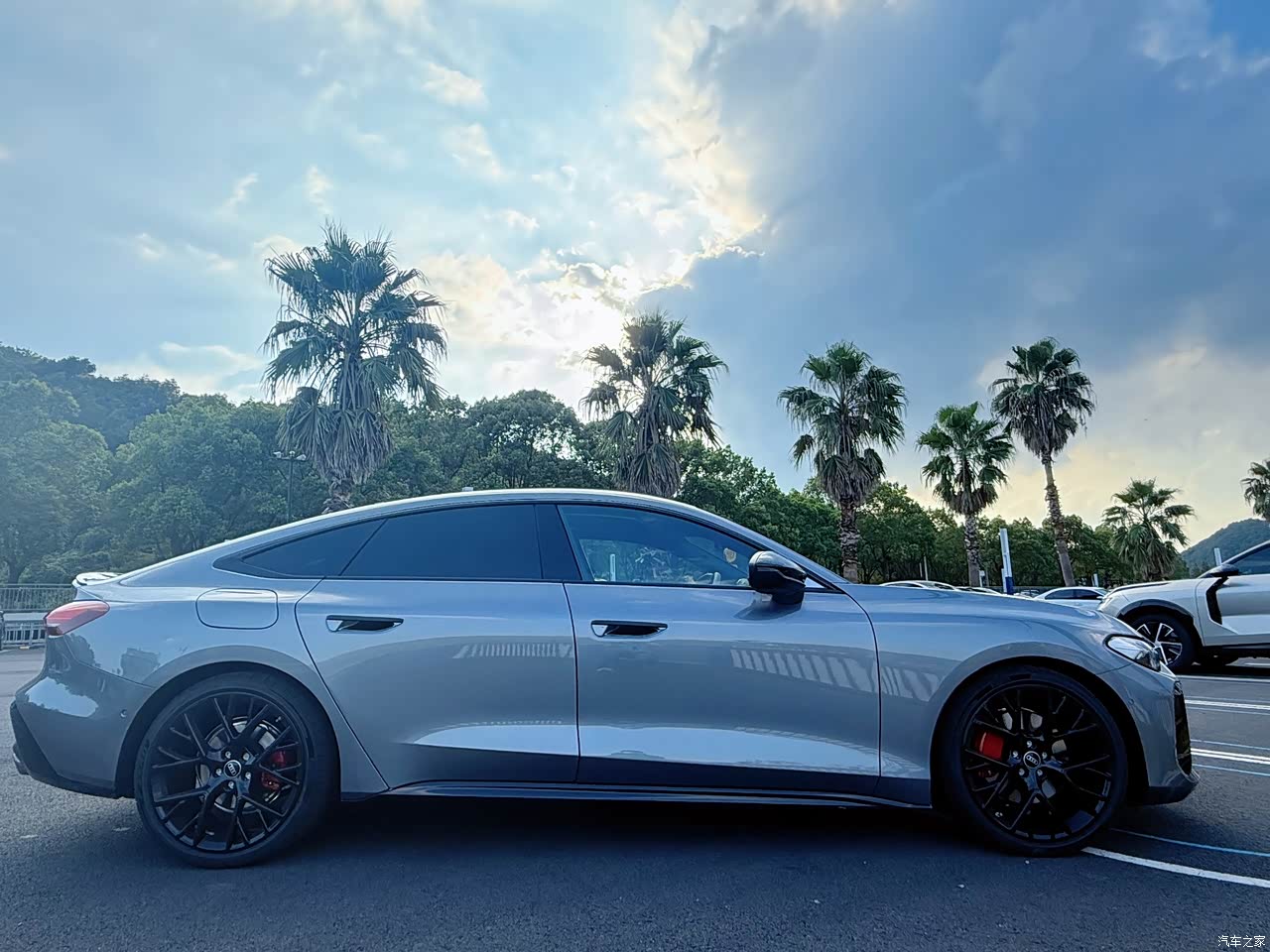 低趴姿态+协调的车身比例,车身腰线锐利又流畅,整车高度还原进口版本的一切优点,并且在加长后会看着更加优雅协调,感觉比上期奥迪A7L更好看一些。重点吹爆首发专属的熏黑套件:后视镜、车门把手、车窗饰条、轮毂、小尾翼,都是全黑,跟车身颜色搭起来超有反差感,运动氛围非常强,看着有种原厂改装车,扮猪吃虎的感觉!无边框车门我也超爱,比传统车门高级太多,隐藏门把手解决了安全和低风阻的兼容问题。车头前脸的低趴风格+熏黑六边形进气口也是非常夸张,看着很好看。