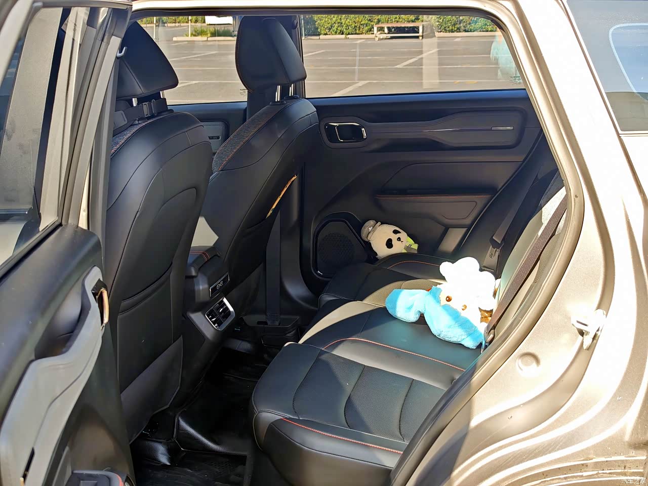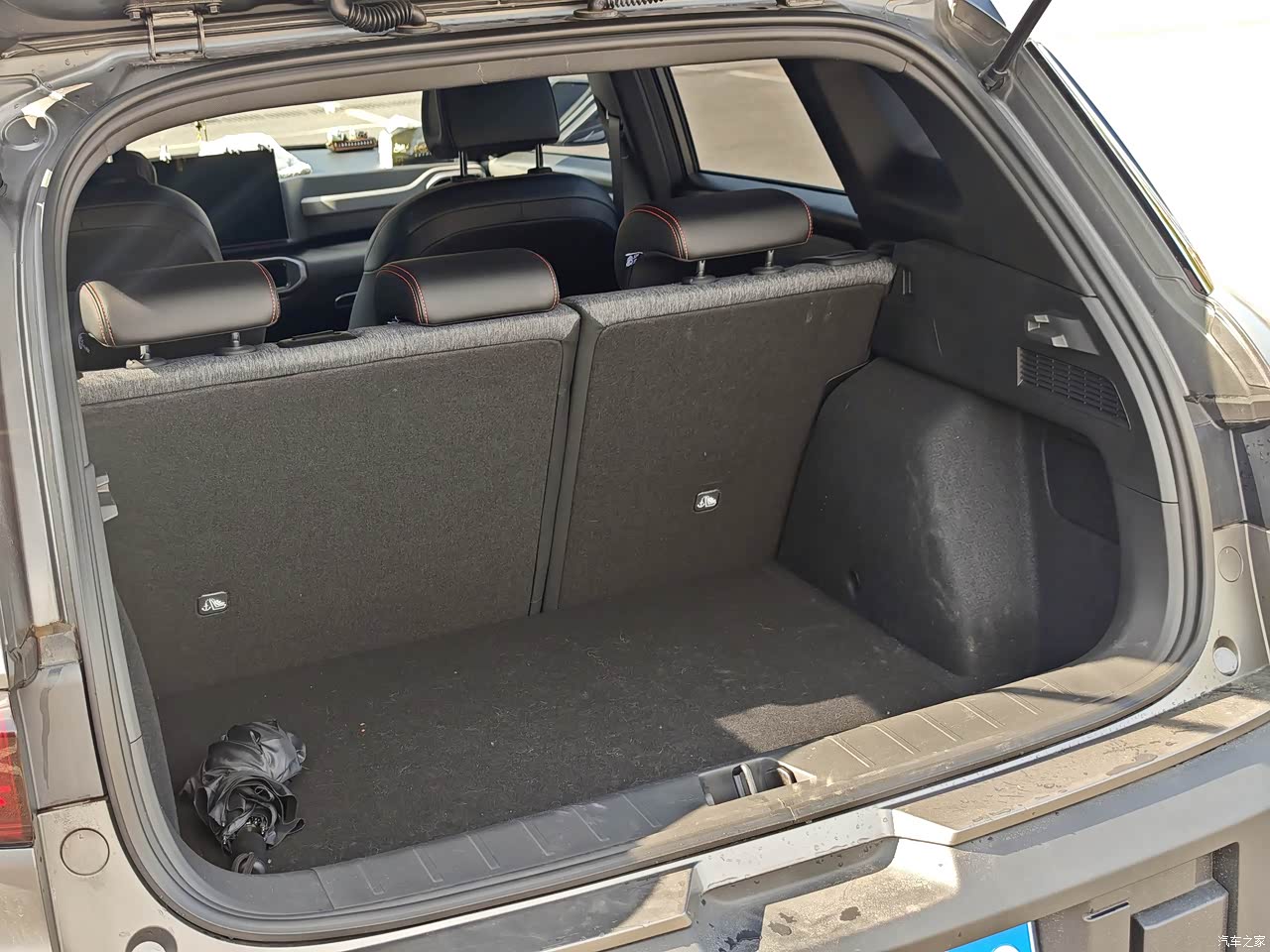 作为紧凑型SUV,空间表现挺够用的。我180的身高前排调好座椅后,头部还有一拳的距离,后排腿部也不挤,坐三个成年人也不会觉得局促。后备箱常规空间不算特别大,但日常放两个行李箱、购物袋完全没问题,后排座椅放倒后还能拓展,偶尔拉点大件物品也能应对。车内储物空间也多,门板、扶手箱都能放东西,尾门的潮旅背包还能装湿衣服,挺实用的。