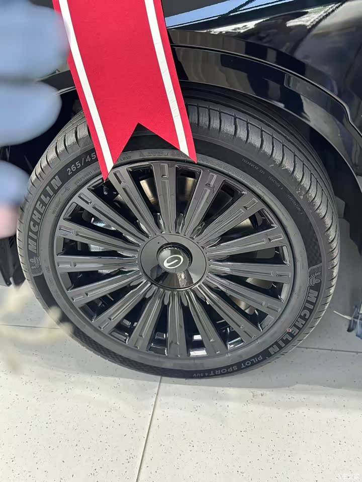 外观简约霸气,看起来十分有安全感。贯穿式的前脸大灯科技感很强,尾部还有可以根据喜好设置灯语,像车内有婴儿就可以通过尾灯设置提示后面车辆和还是挺实用的。