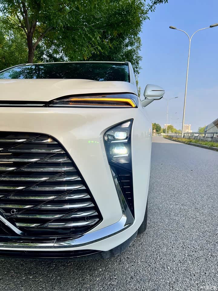 我选的外观是白色的,不仅大气又年轻化,不管是商务接待还是家庭出游都合适。车身线条很稳重,就是车太大了,在市区窄路停车得小心翼翼,生怕刮着。