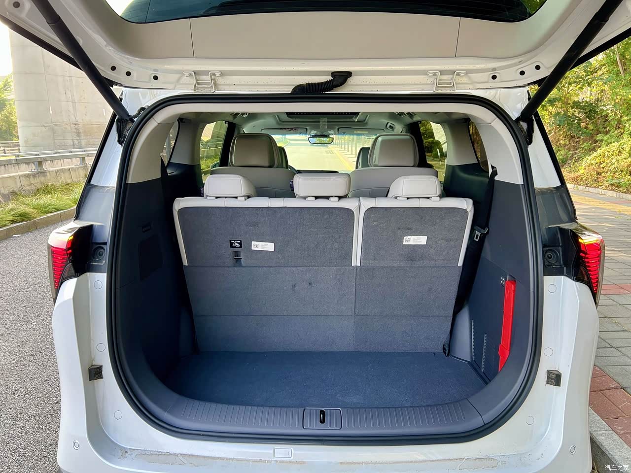 空间没话说,我1米8坐主驾头顶还有一拳。第二排客户坐进去能跷二郎腿,第三排凑合能做坐三个成年人也不挤,但是个高的得坐中间。后备箱装三个行李箱加客户的高尔夫球包,轻轻松松。