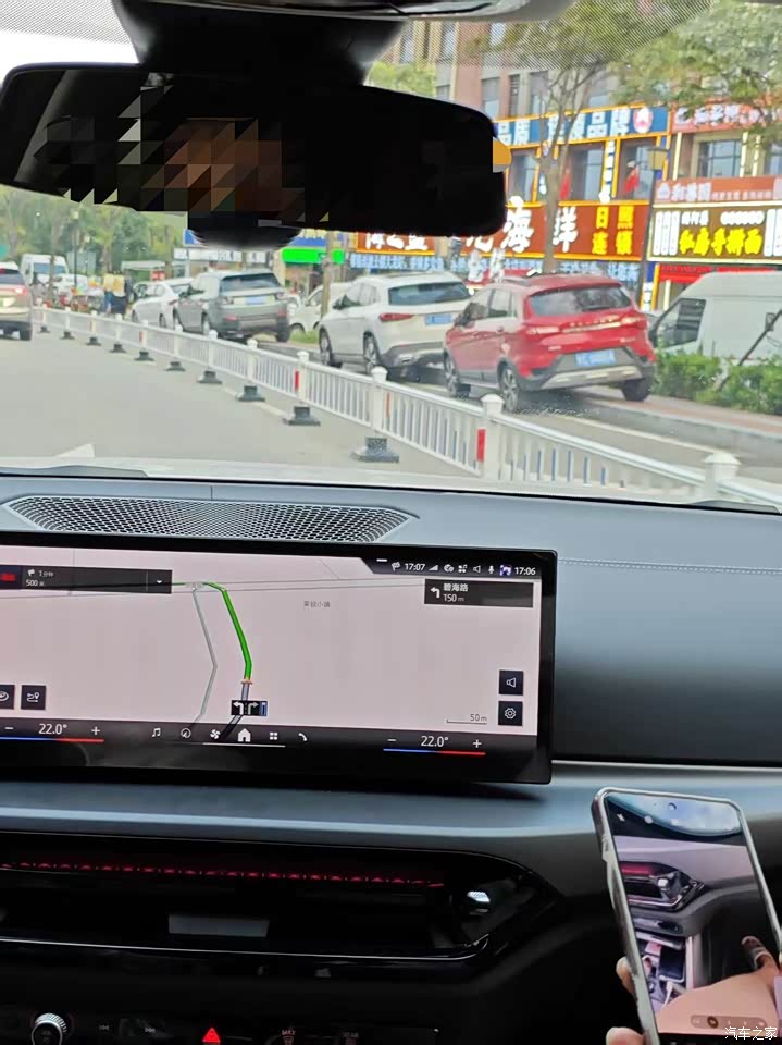 只能说“够用但不够顶”。基础配置都有:CarPlay互联、高清倒车影像,日常停车省心,虽然是没有360,但也够用;但没有座椅通风/加热/按摩——这几天降温,早上坐进车座椅冰得慌,夏天估计得靠空调硬吹;车机导航有时还会有些错误,瞧照片,红灯跟我说是绿灯。