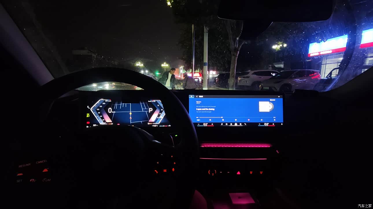 内饰还是蛮喜欢的,M运动方向盘握感刚好,实体按键反馈清脆;悬浮中控屏不挡视线,看起来还蛮像有现代科技感的车。运动皮质座椅日常半小时通勤很舒服,但开超1小时腰会有些发酸,包裹性确实能再升级;氛围灯是经典按键发光,虽不花哨,但晚上开车不刺眼,有种低调精致感,还可以,总体打个四星。