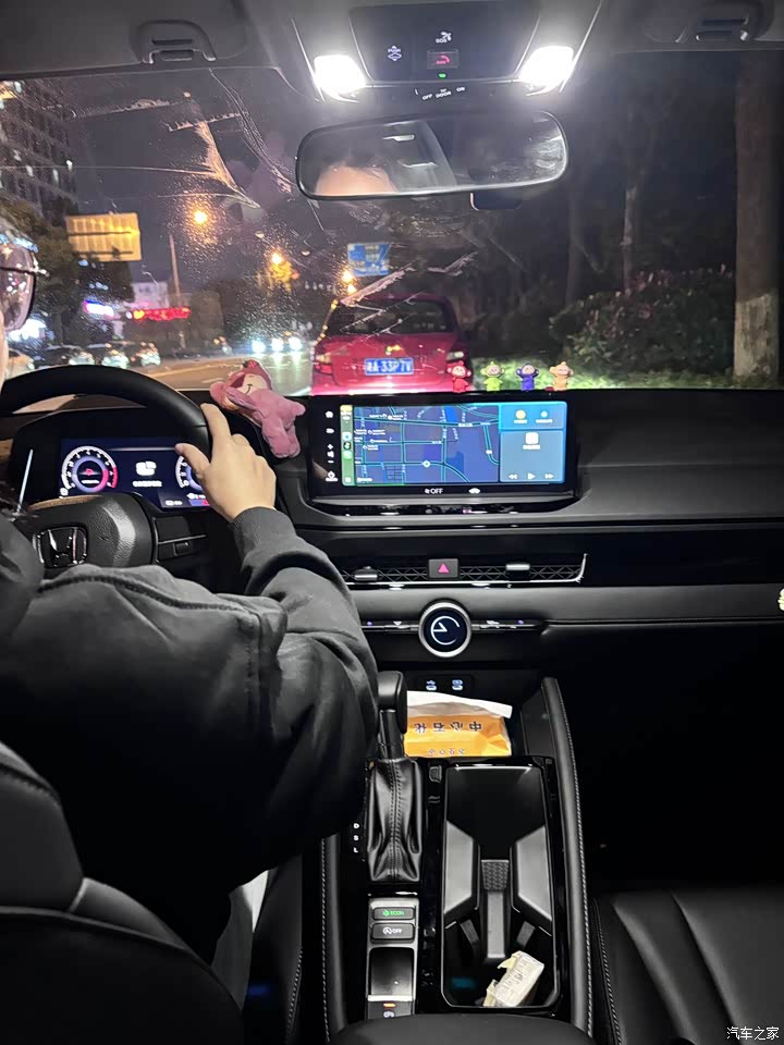 一点不输高级感。最显眼的就是那个旋转旋钮,开车时候盲操特别顺手,不用在那儿戳屏幕戳半天。手能摸到的地方基本都是软的,缝线也工整,没那种硬塑料的廉价感。空调出风口是现在流行的贯穿式,还可以左右两边调节,座椅坐着也挺得劲,包裹感刚好,开长途不容易累。整体就是那种很舒服、很顺手的感觉,没啥花里胡哨的,但用起来处处都觉着贴心