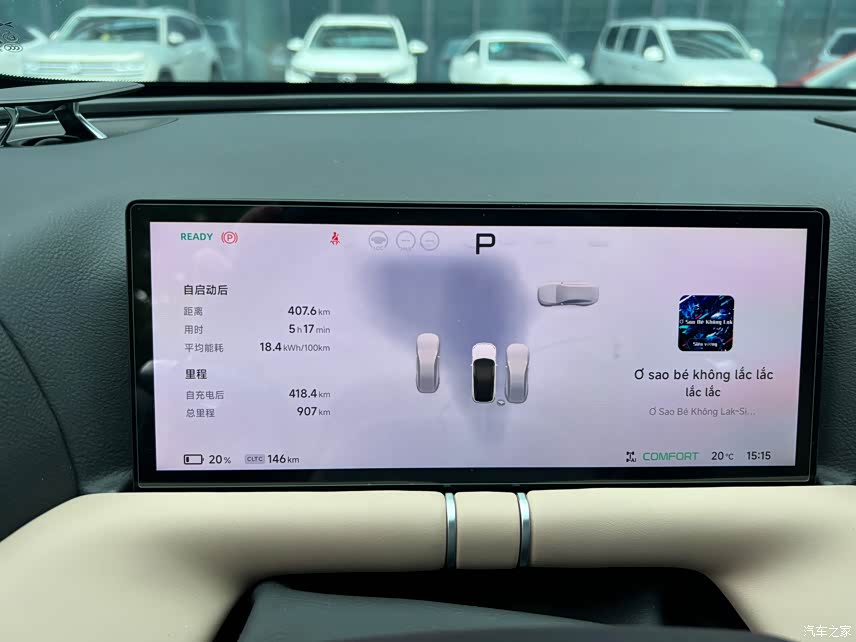 最满意的还是空间吧,这个车的空间很大,25款又标配了空悬,整个驾乘真的不要太爽了。国庆的时候开车去了一趟南阳,用了“高速NGP很爽,自己超车,自己变道”,有一段路聊天聊忘了,还好有NGP提醒。有一个小插曲“有一段路下着小雨,NGP识别错误,有个紧急刹车,但是车没有完全刹停,当时还有点吓人,视觉雷达还是差点意思,不过这样也好,可以随时提醒车主不要太相信智能驾驶”。建议大家在雨天时不要使用智能驾驶。这个续航还是在车里看了视频的情况下显示的,返程的忘了拍,到家里显示还有40%的电,高速的电耗在17.18之间,市区的话可以到13.14。所以整体感受还是相当可以的,这么大的车,有这个表现真的很不错了。图一是高速的续航表现,图二是市区的续航表现。请大家自己对比。