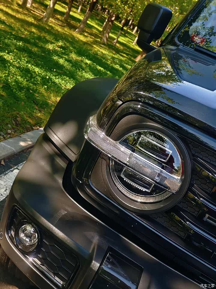 圆形LED大灯夜间照明效果好,在没有路灯的偏远路段也能看清路况。宽体轮眉搭配越野轮胎,看起来特别可靠,拖挂房车时气场更足。