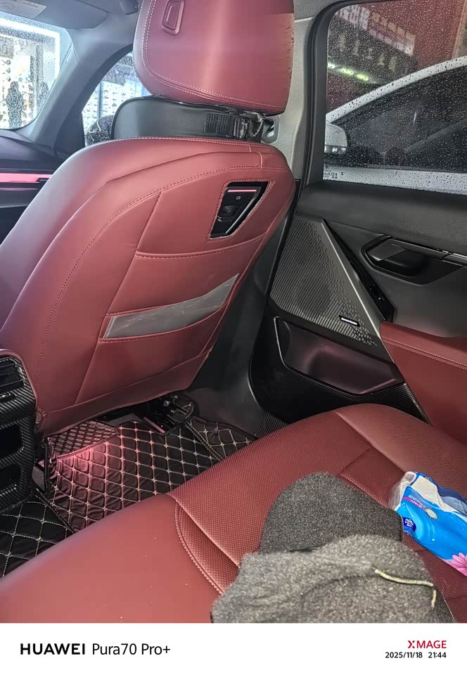 用料方面好评,符合车型价位和定位,能摸到的地方都是软包,中控台最下方、车门板最下方杯架区域和中控岛台档把两侧都是软包的,和E级水平一致。仔细摸的话,我感觉好像在门板和中控台上方的材质好像不是皮子,而是仿皮的材质,摸上去质感一般。做工其实也不错,但我感觉车门板上的装饰元素太多了,不仅看着杂乱,而且各种材料一拼接,难免会有很多接缝。
