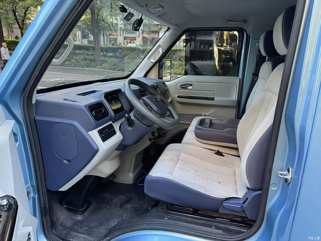 这款车的内饰设计完全就是为了拉货设计的,耐磨的硬塑料和织物材质座椅经久耐用,日常拉货完全不用担心弄脏磨损,清洁起来特别省心。人体工学座椅对腰部的支撑很到位,跑长途也不容易累。中控布局简洁明了,所有操作按钮都触手可及,储物格的位置设计得很顺手,重要物品随手就能放取,唯一的建议就是希望能增加深色系配色选择。