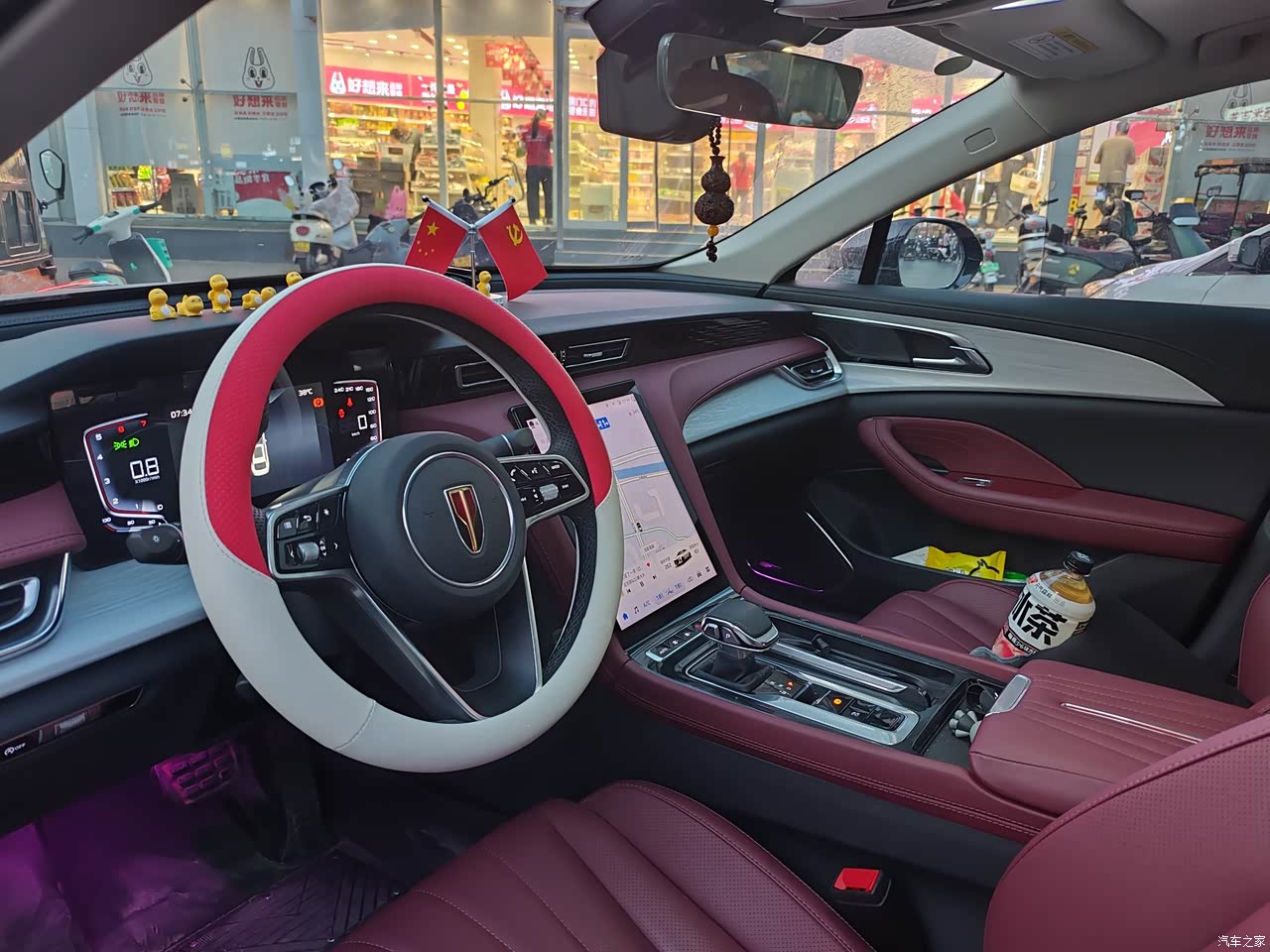 红旗H5的红色内饰堪称国产中型车豪华感与年轻化的标杆之作,其以石榴红为主调的配色方案极具巧思,既保留了红色的活力与激情,又通过黑红双拼设计中和了艳俗感,呈现出高级又不失个性的视觉效果。内饰用料诚意十足,中控台、车门板等核心区域大面积采用软质材料包裹,触感细腻温润,搭配精细的缝线工艺与玫瑰金色饰条、拉丝铝面板的点缀,质感直逼豪华品牌 。 座椅采用豪华真皮材质,部分顶配车型还配备打孔工艺与红色专属包覆,不仅视觉上极具冲击力,人体工程学设计更带来出色的乘坐舒适性,配合12向电动调节、座椅加热/通风/按摩等功能,实用性拉满 。环抱式座舱布局搭配悬浮式中控屏与全液晶仪表,科技感与中国设计美学完美融合,64色可调氛围灯与红色内饰相互映衬,进一步烘托出沉浸式驾乘氛围 。 配置层面同样亮眼,智能语音助手、手机远程控制、11扬声器BOSE音响等功能一应俱全,兼顾了科技体验与实用性。不过红色内饰存在不耐脏的小遗憾,需要日常精心打理,但这并不妨碍其成为兼顾年轻审美与家用需求的优质选择,无论是年轻人